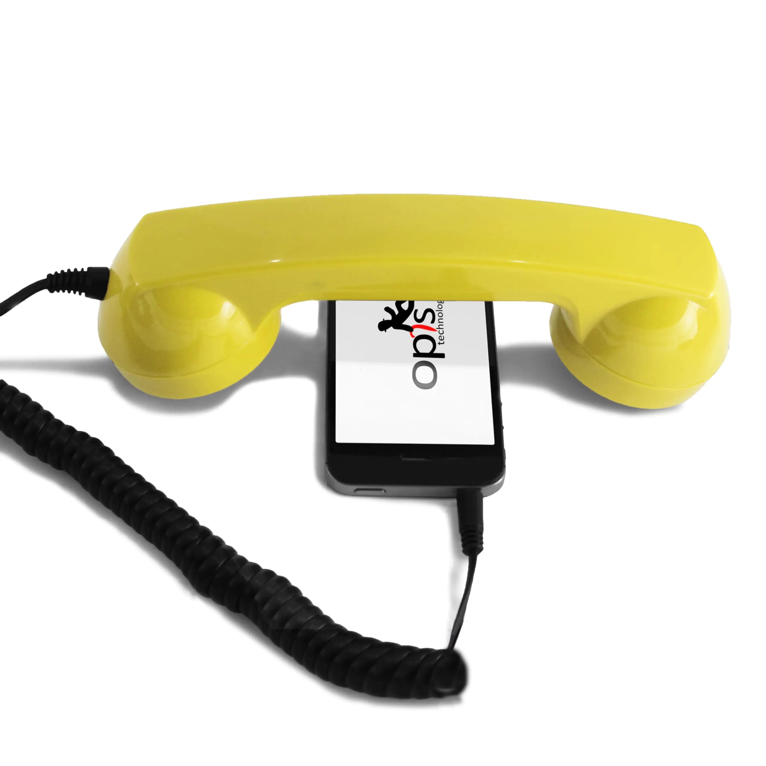 60s Micro Retro Phone Handset – Vintage Mobile Receiver with AUX for Cell Phones (Yellow)