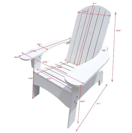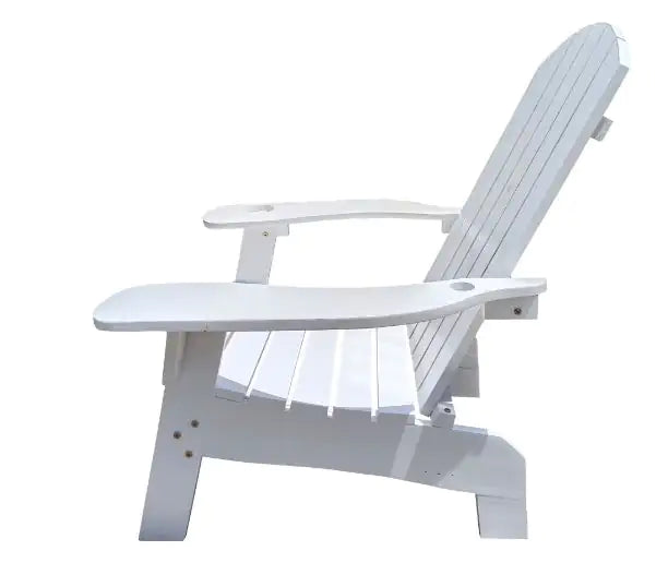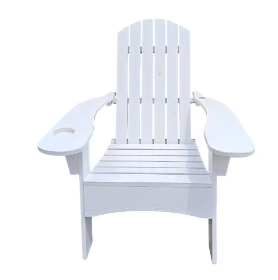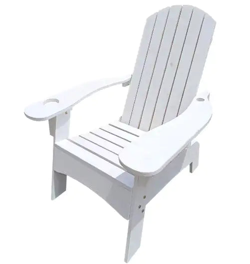 - Product Name: Outdoor or Indoor Wooden Adirondack Chair with Umbrella Hole in Armrest – White