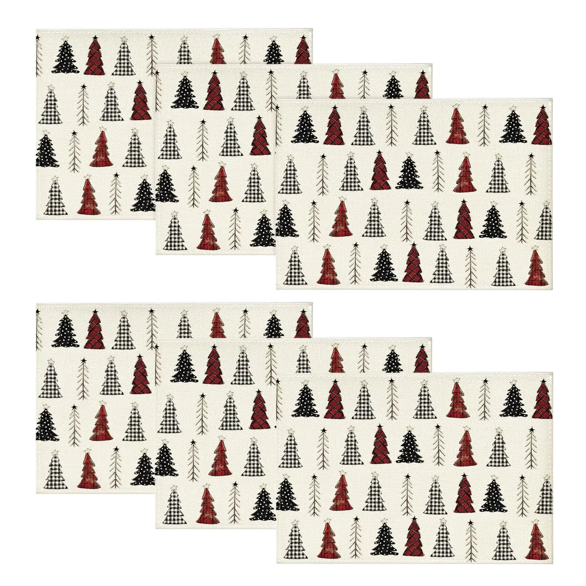 Artoid Mode White Christmas Tree Placemats – Set of 6, 12x18" Winter Table Mats for Holiday Dining & Kitchen Decor