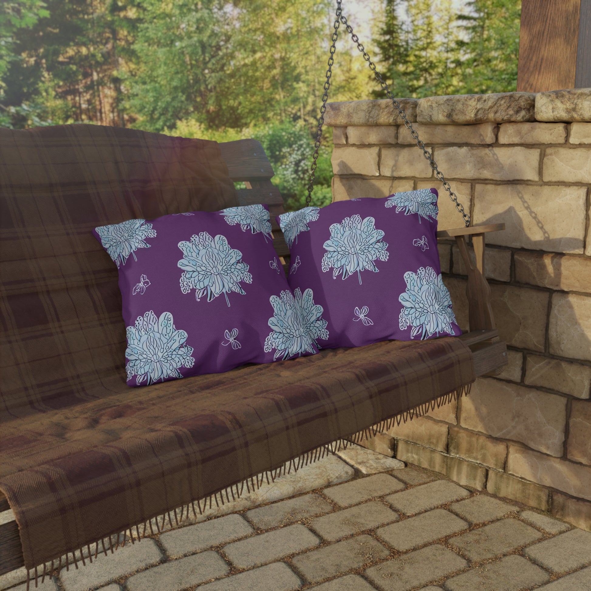 Blue Floral Butterflies 18" x 18" Outdoor Pillow