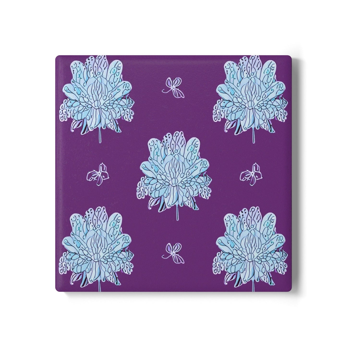 Blue Floral Butterflies 4" x 4" Square Ceramic Coaster