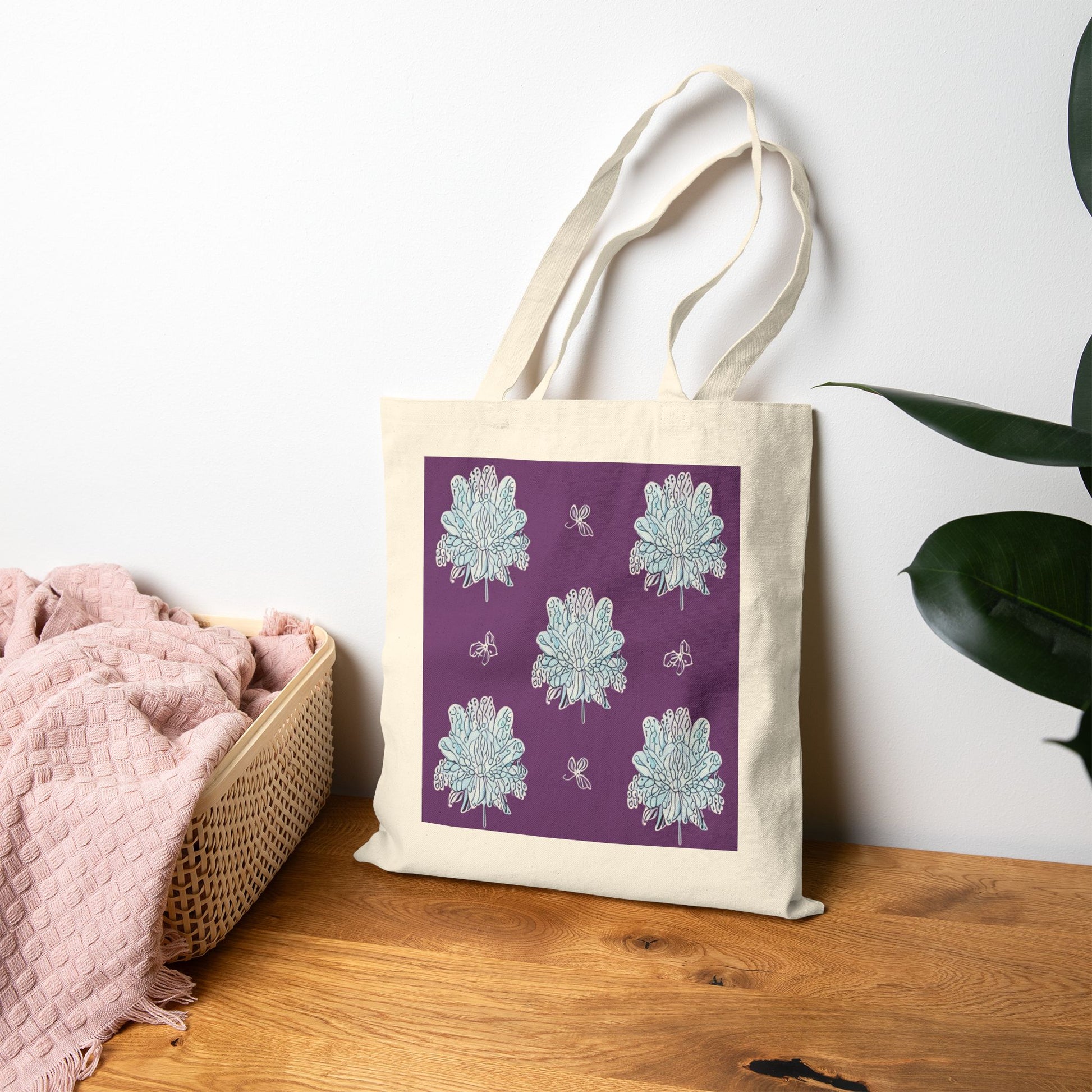 Blue Floral Butterflies Cotton Canvas Tote Bag