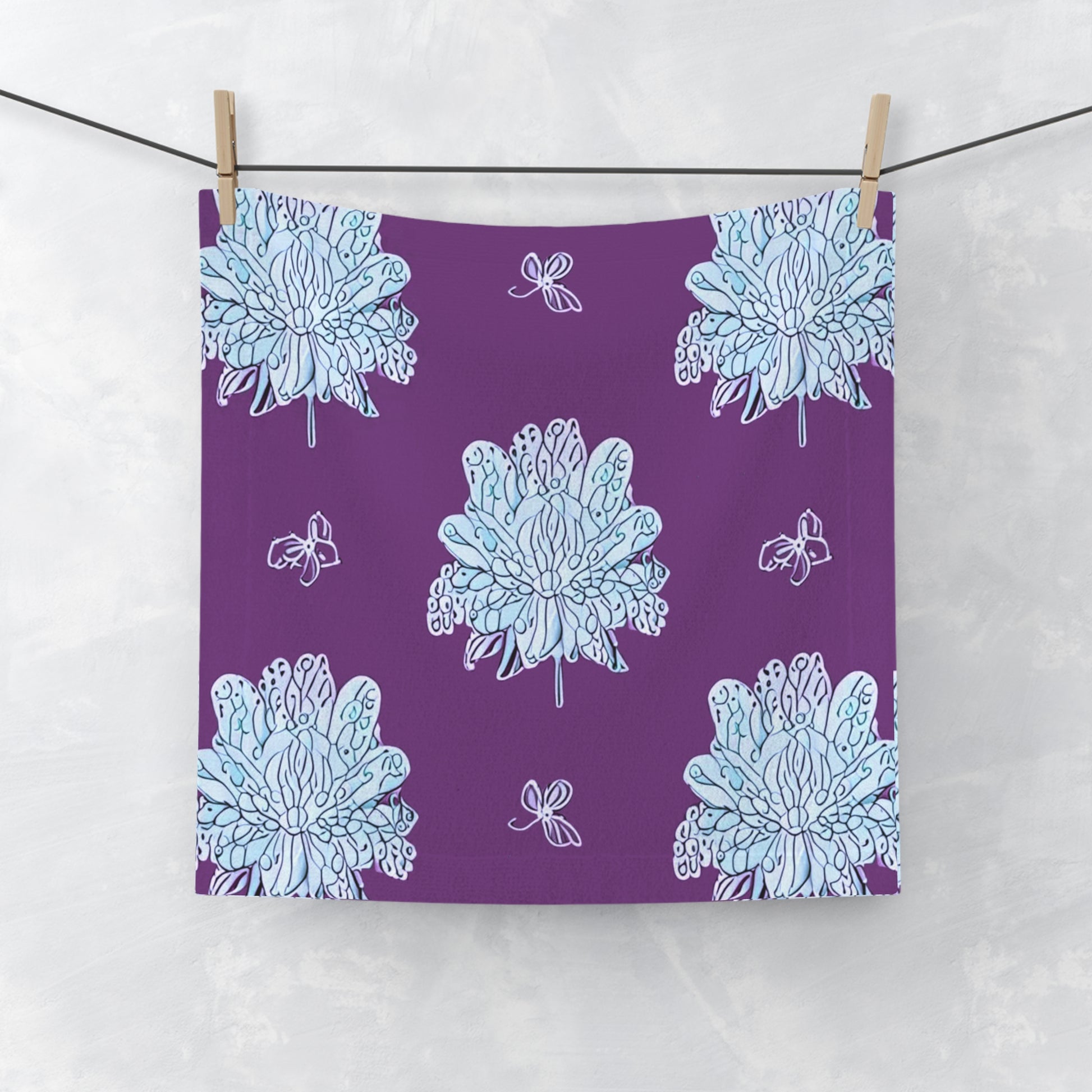 Blue Floral Butterflies Face Towel, 13" x 13"