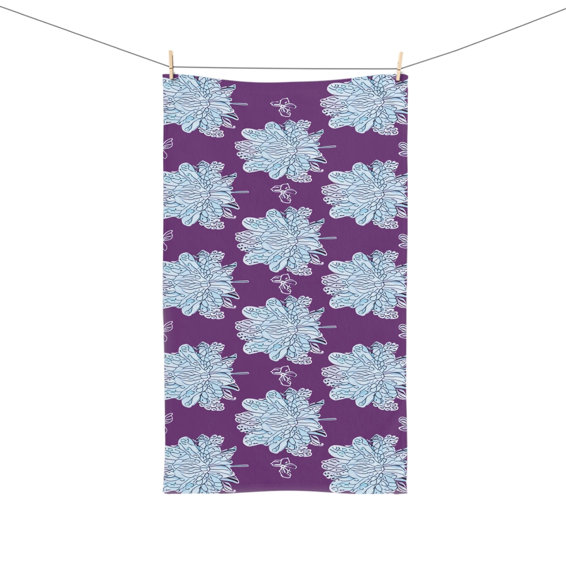 Blue Floral Butterflies Hand Towel, 16" x 28"