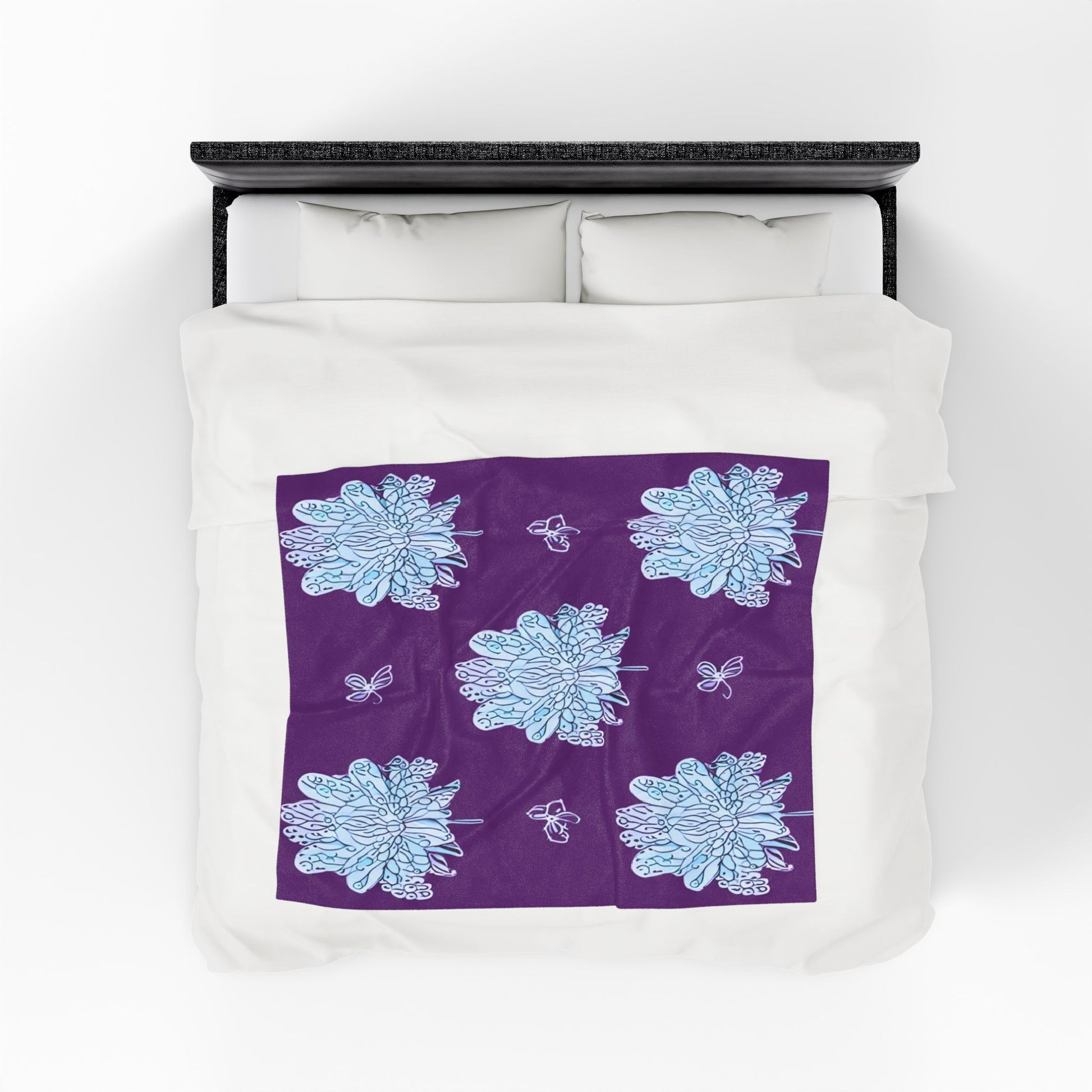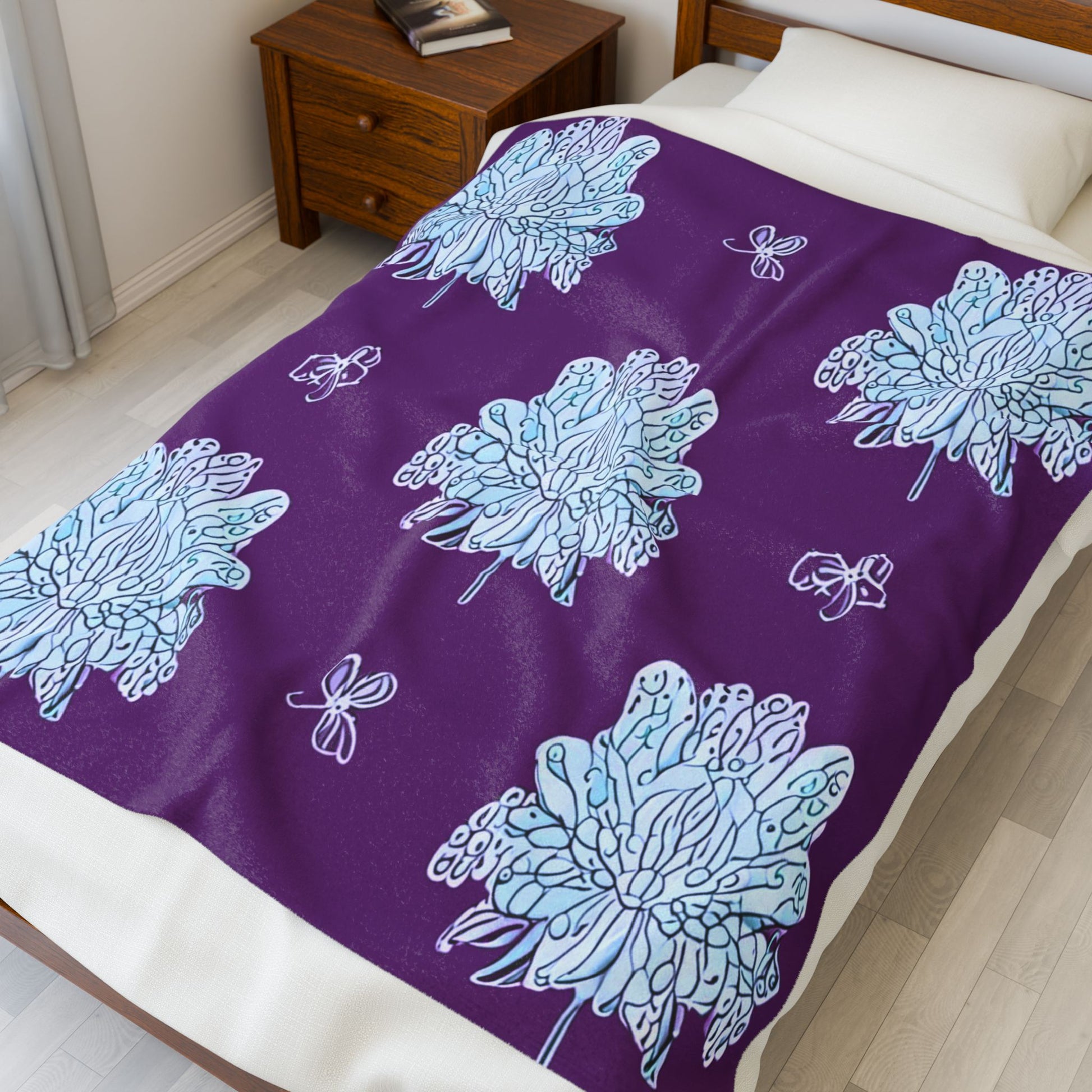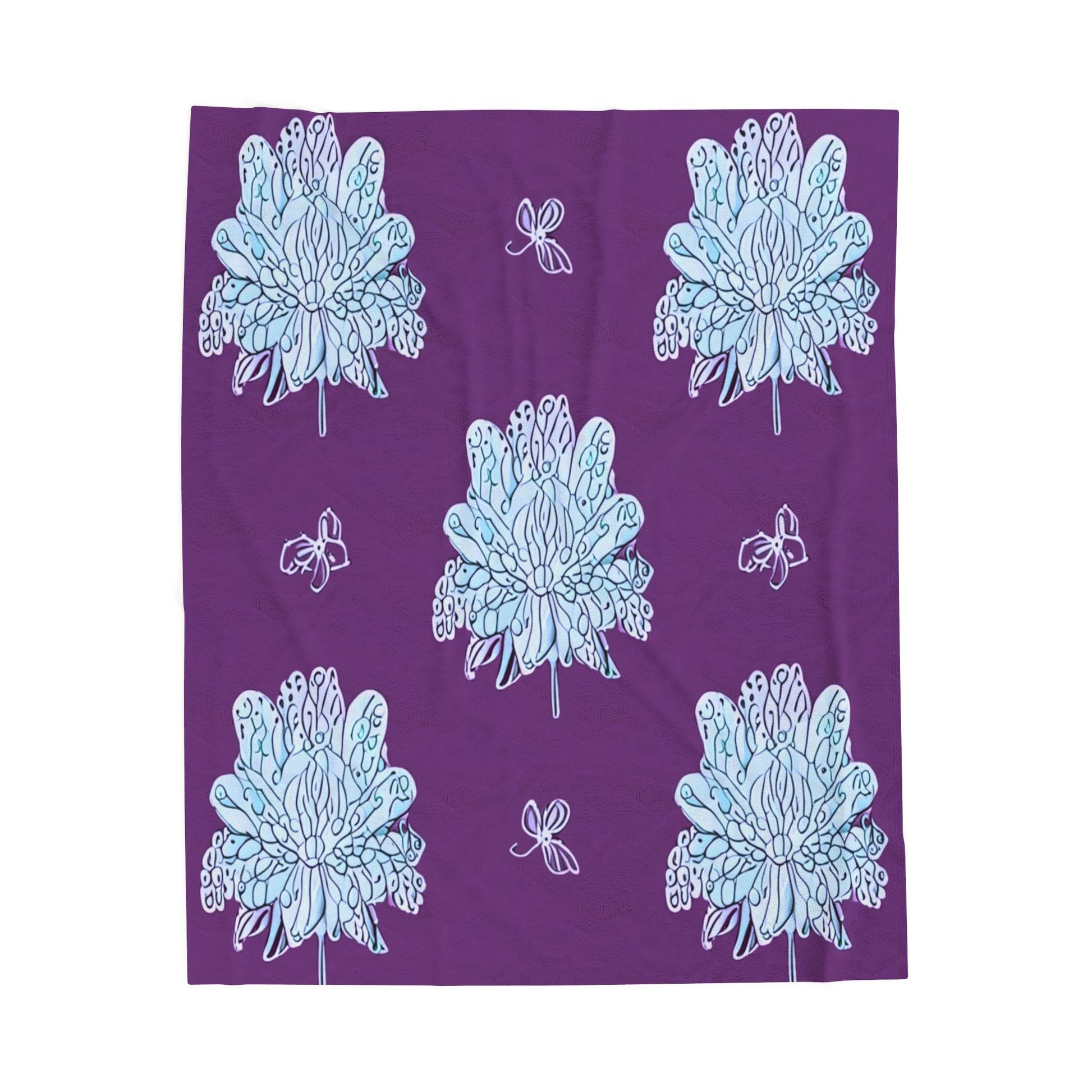 Blue Floral Butterflies Velveteen Plush Blanket, 50" x 60"