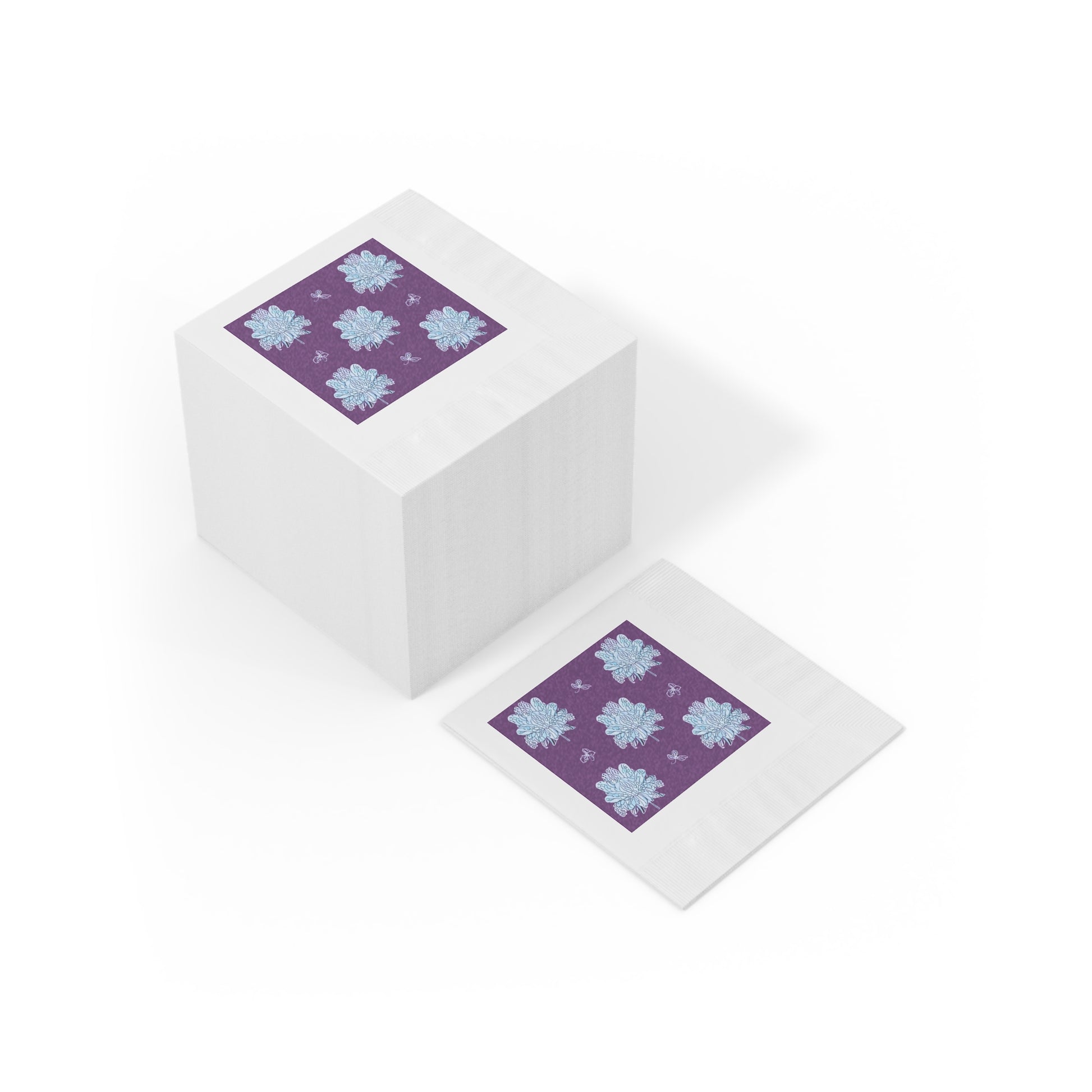 Blue Floral Butterflies White Coined Napkins, 4.8" x 4.8"