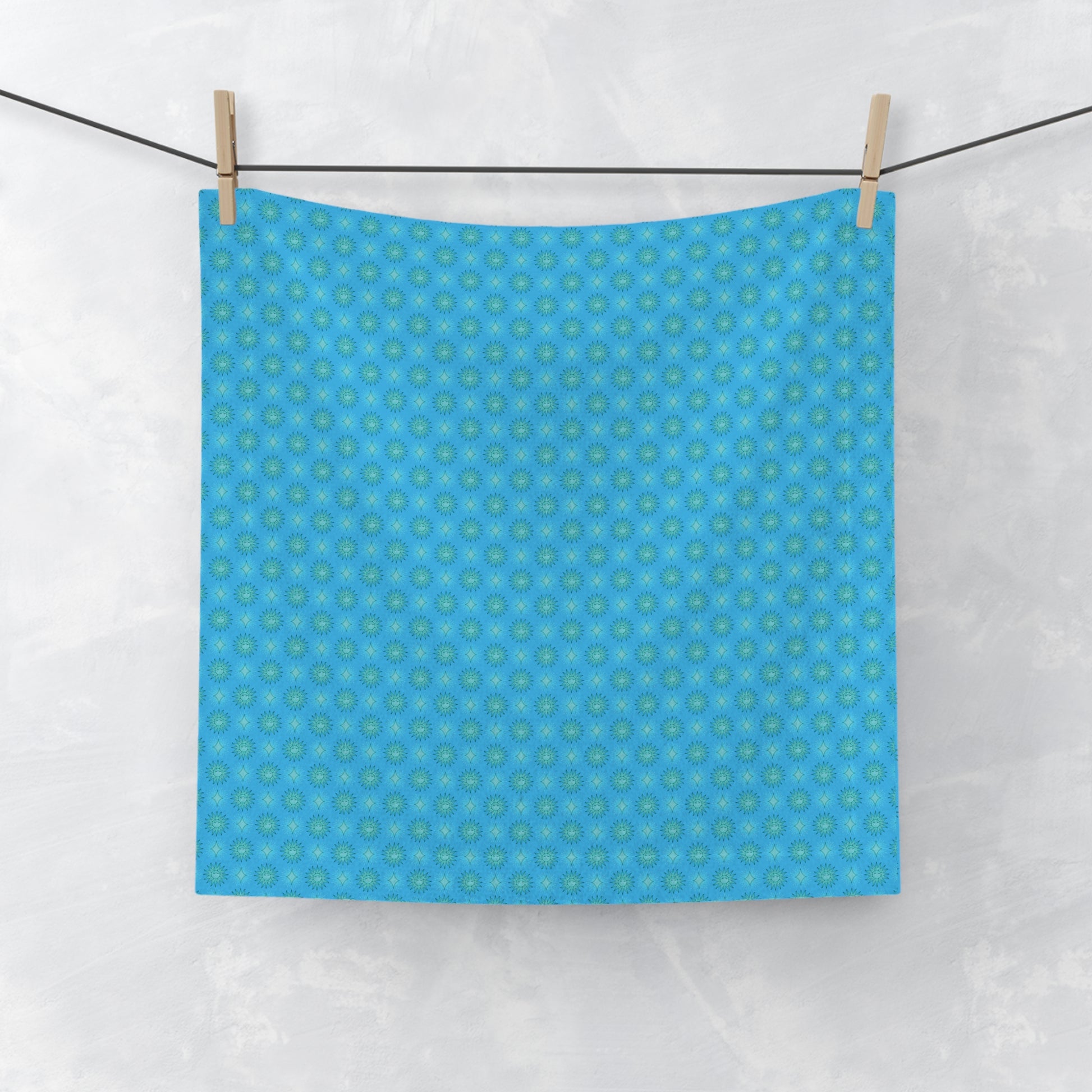 Blue Green Star-crossed Bodies Face Towel, 13" x 13"