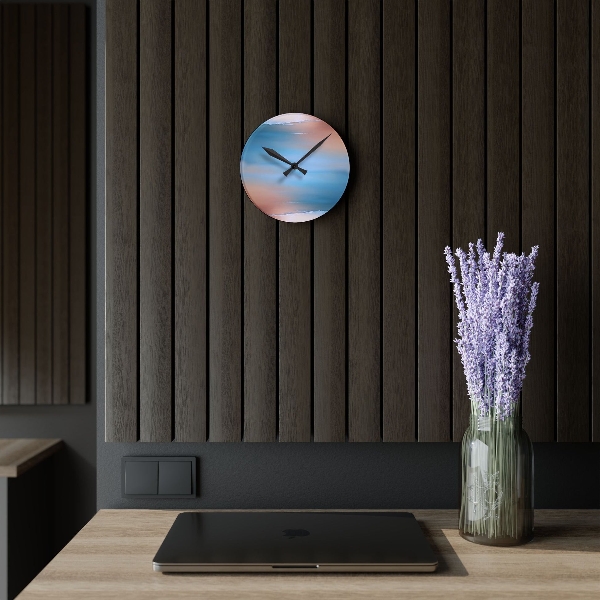 Blue Sea Peach Fog Acrylic Round Wall Clock, 8" x 8"