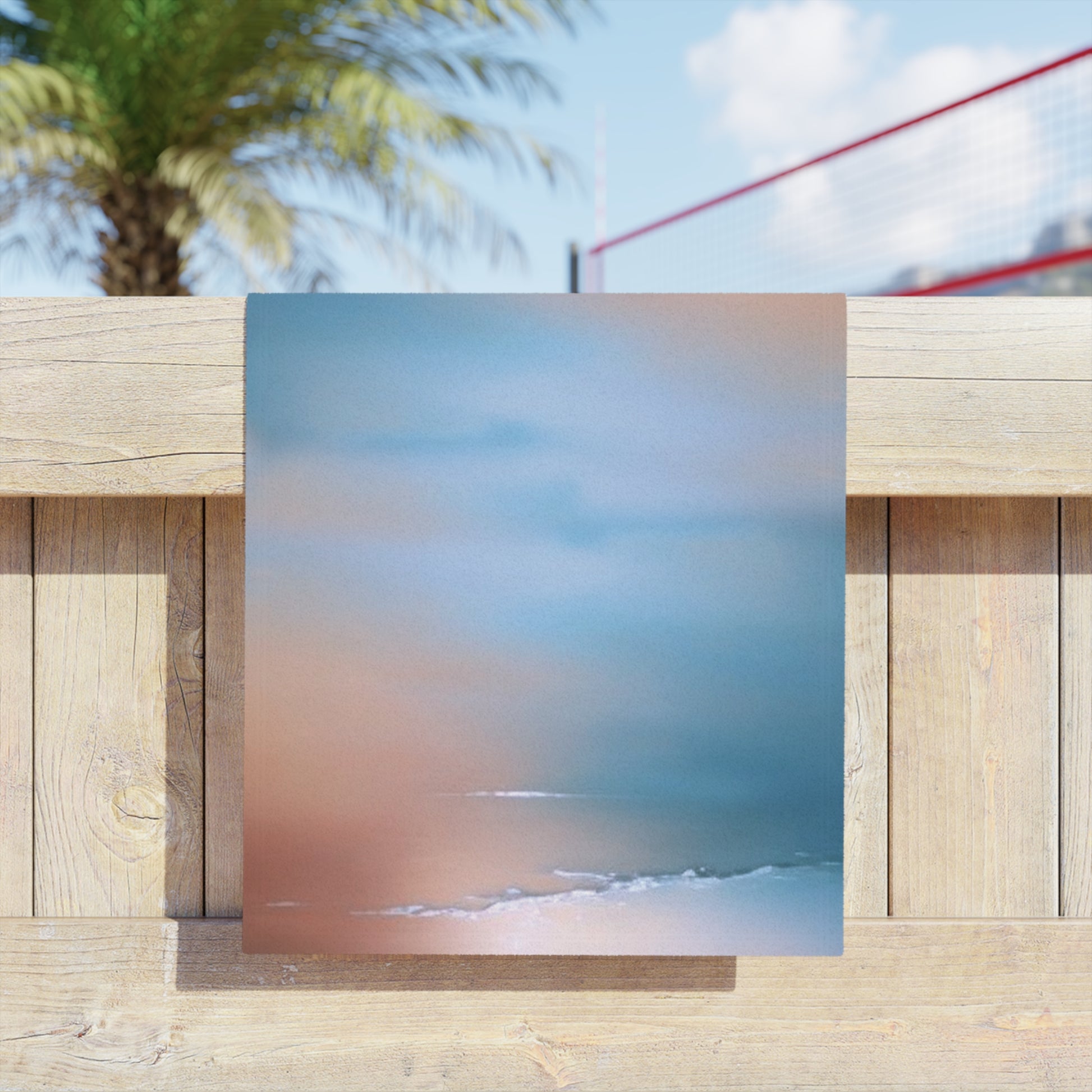 Blue Sea Peach Fog Beach Towel, 18" x 27"
