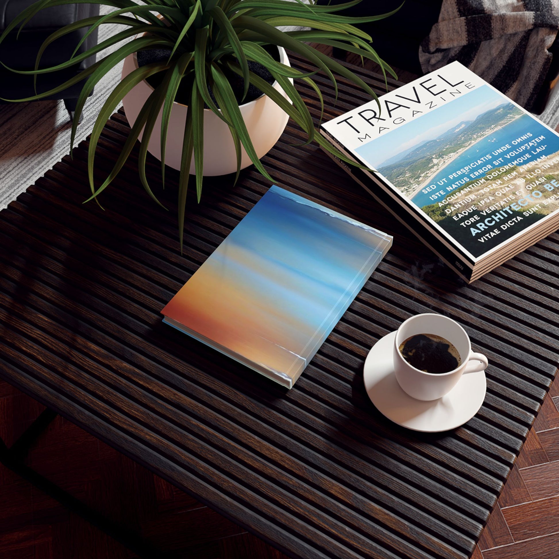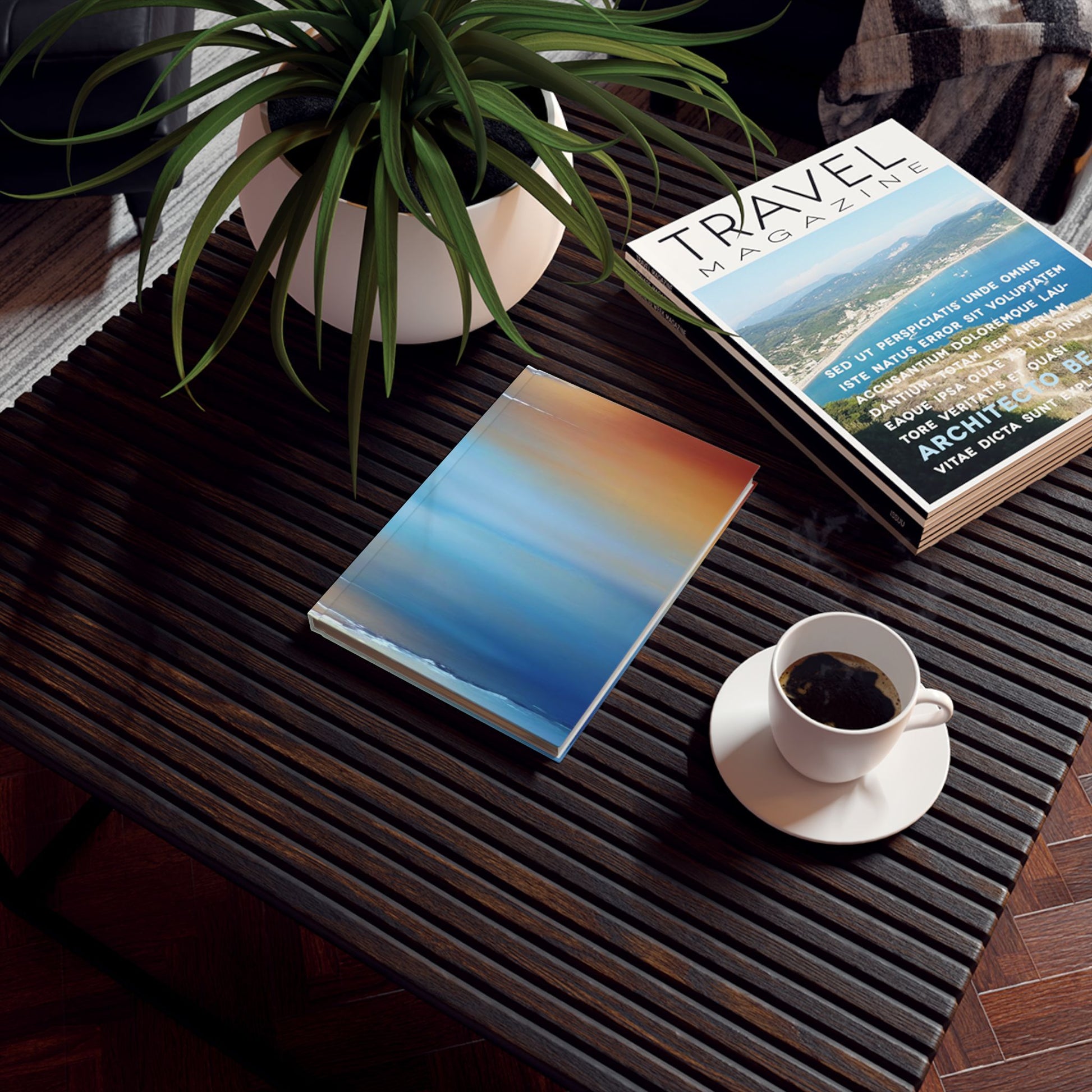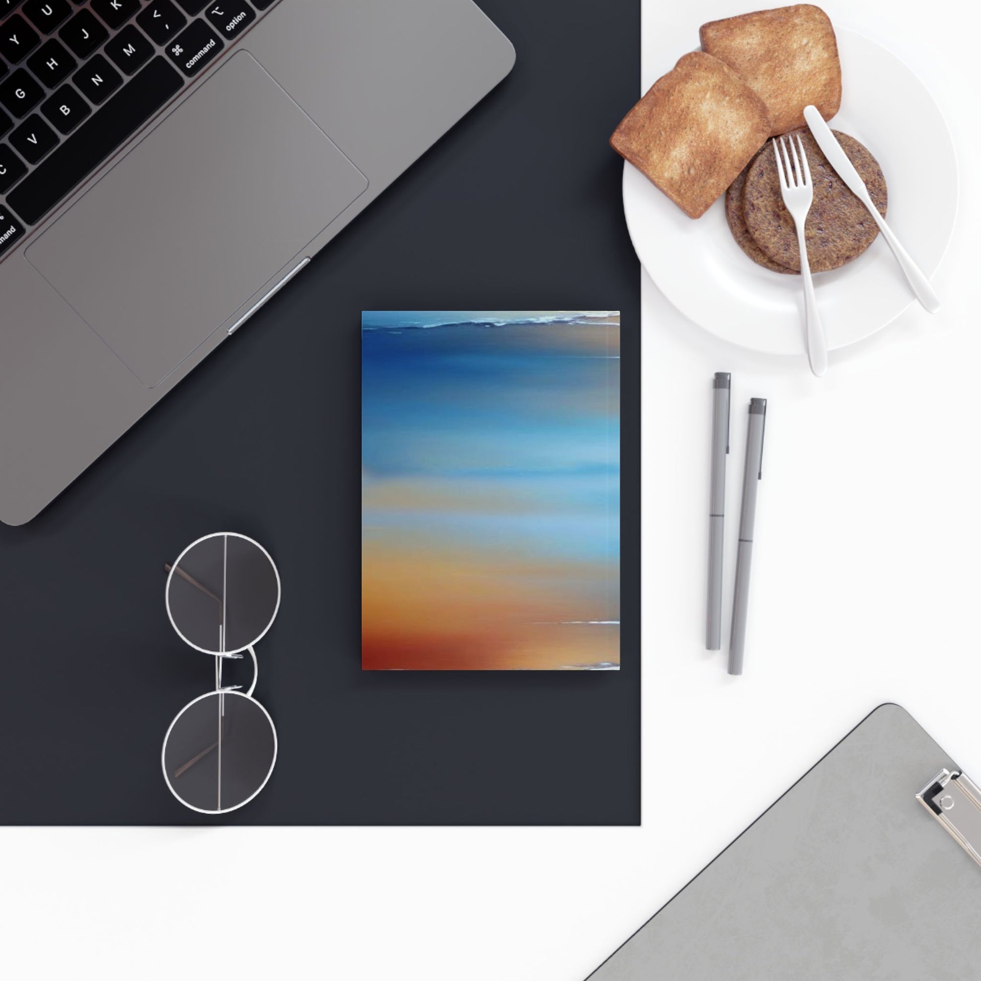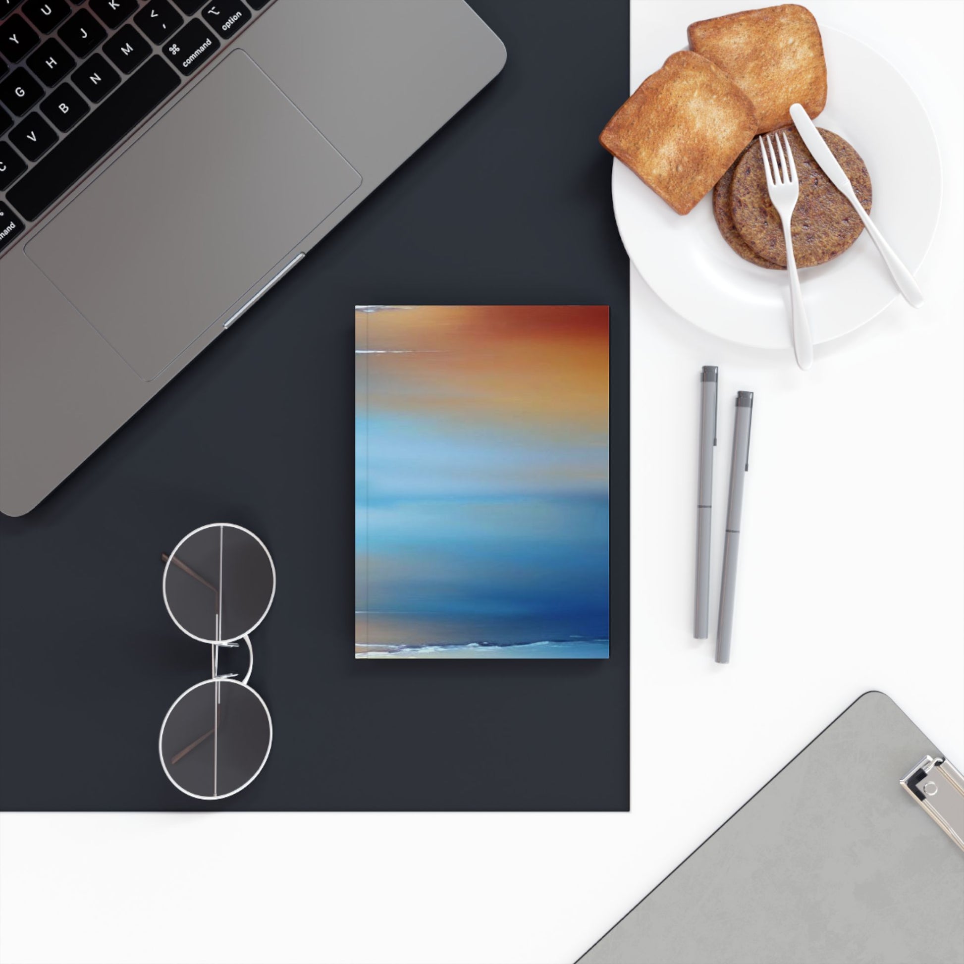 Blue Sea Red Orange Fog 5.2" x 7.4" Hard Backed Journal with 128 blank pages