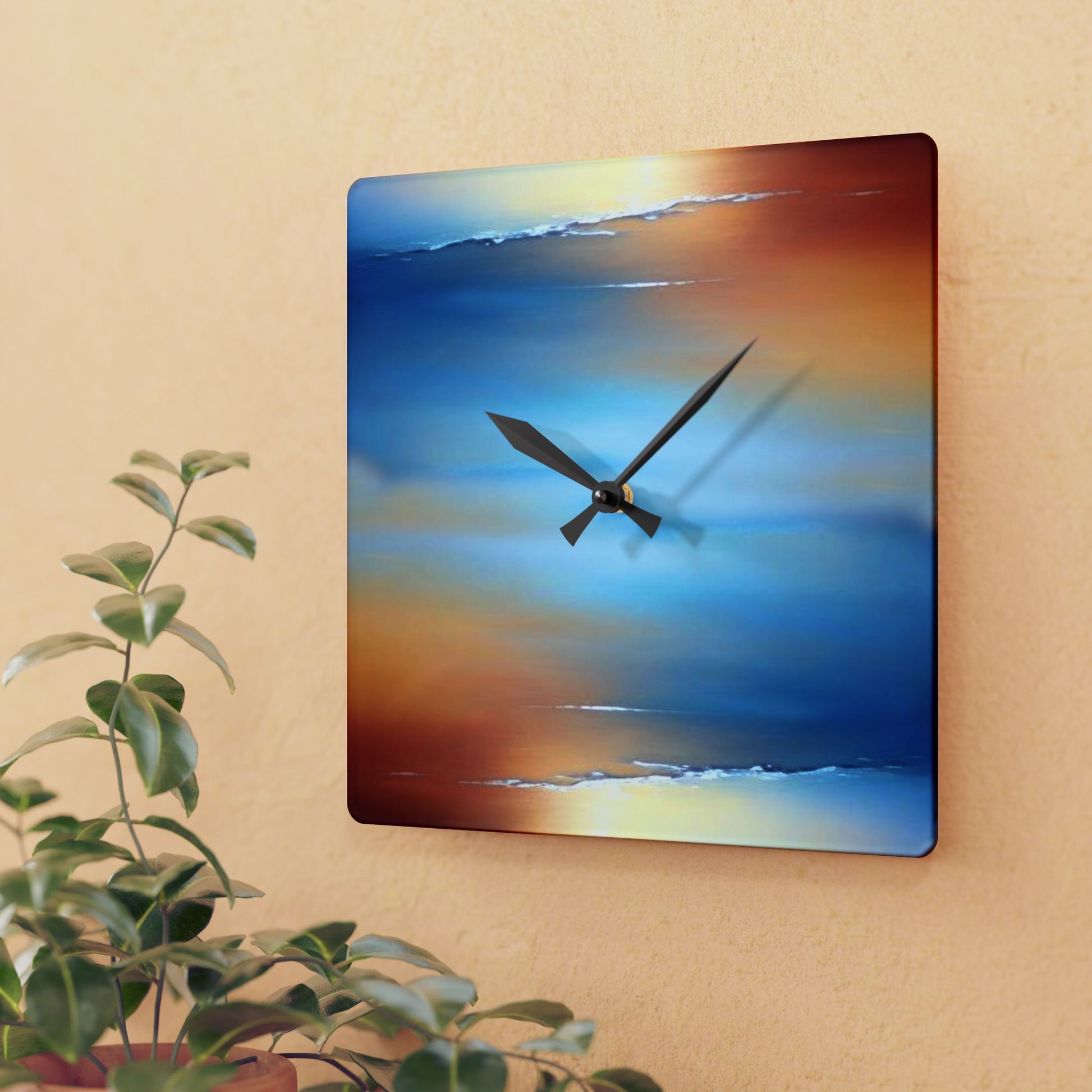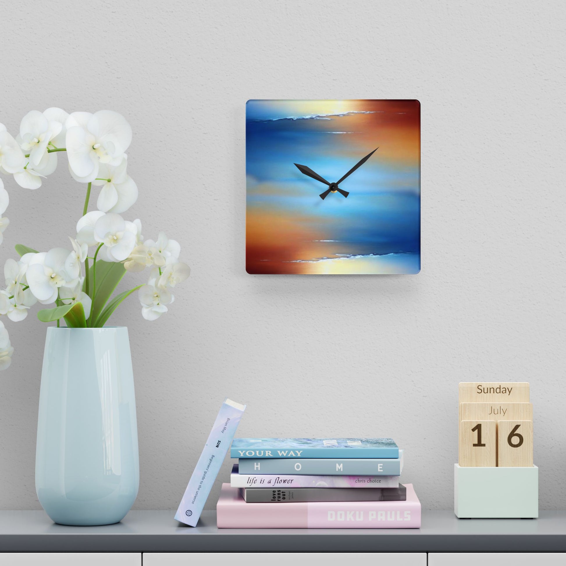 Blue Sea Red Orange Fog Acrylic Wall Clock, Round or Square, 10.75" x 10.75"