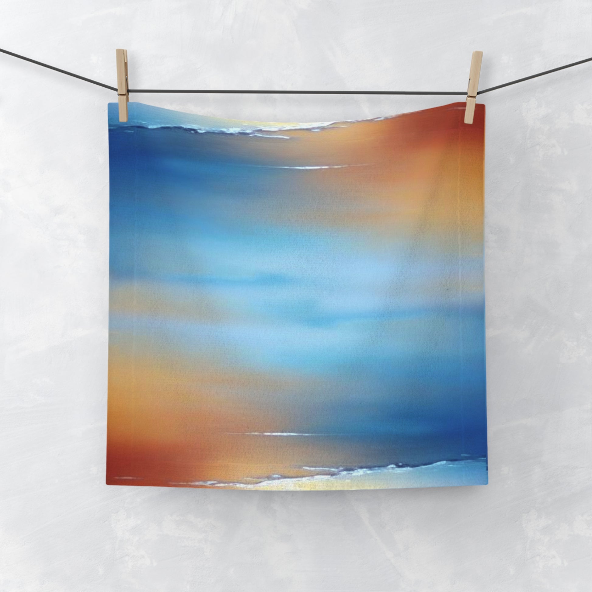 Blue Sea Red Orange Fog Face Towel, 13" x 13"