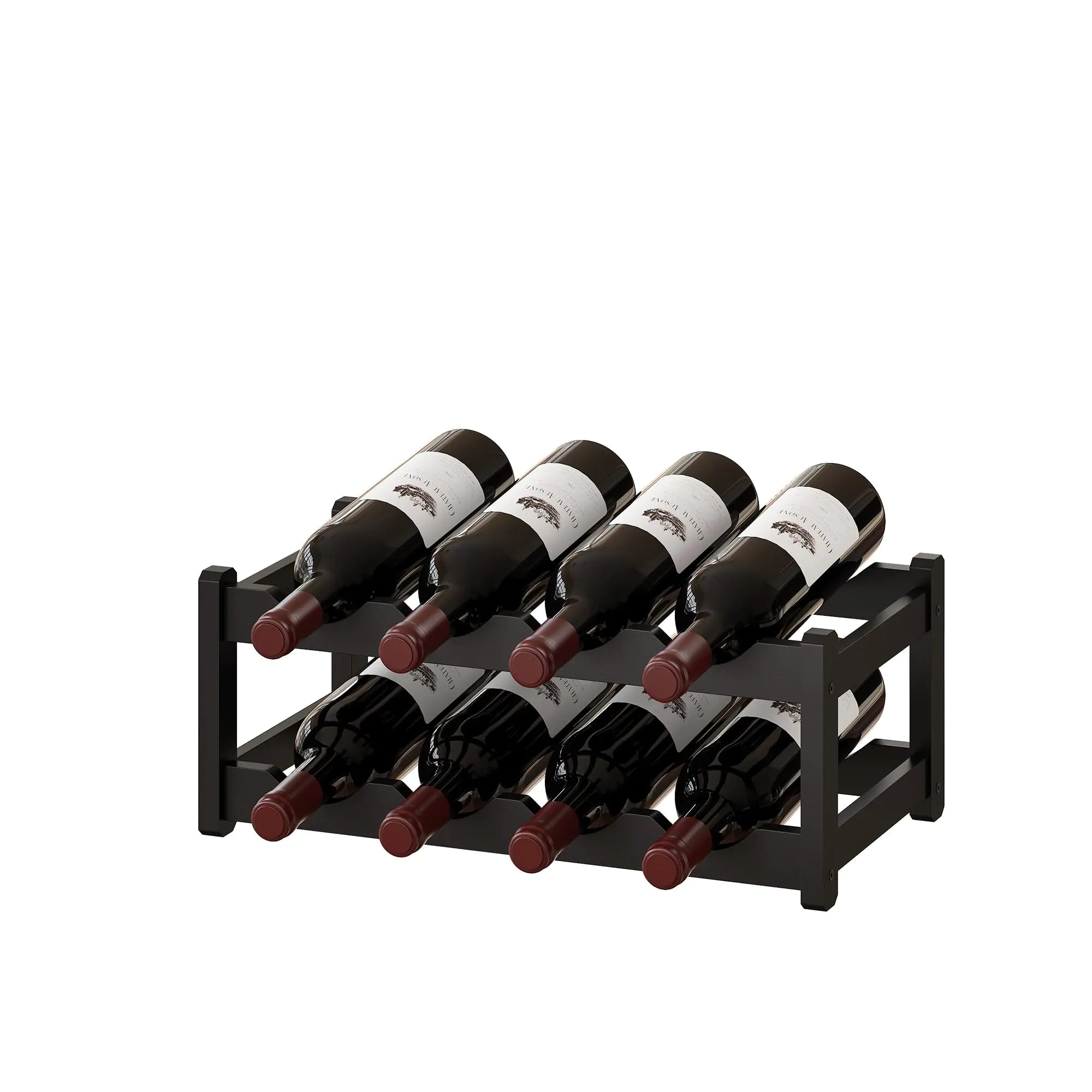 2-Tier Bamboo Wine Rack – Sturdy 8-Bottle Countertop Wine Storage Shelf for Kitchen, Dining Room, Pantry (Black)
