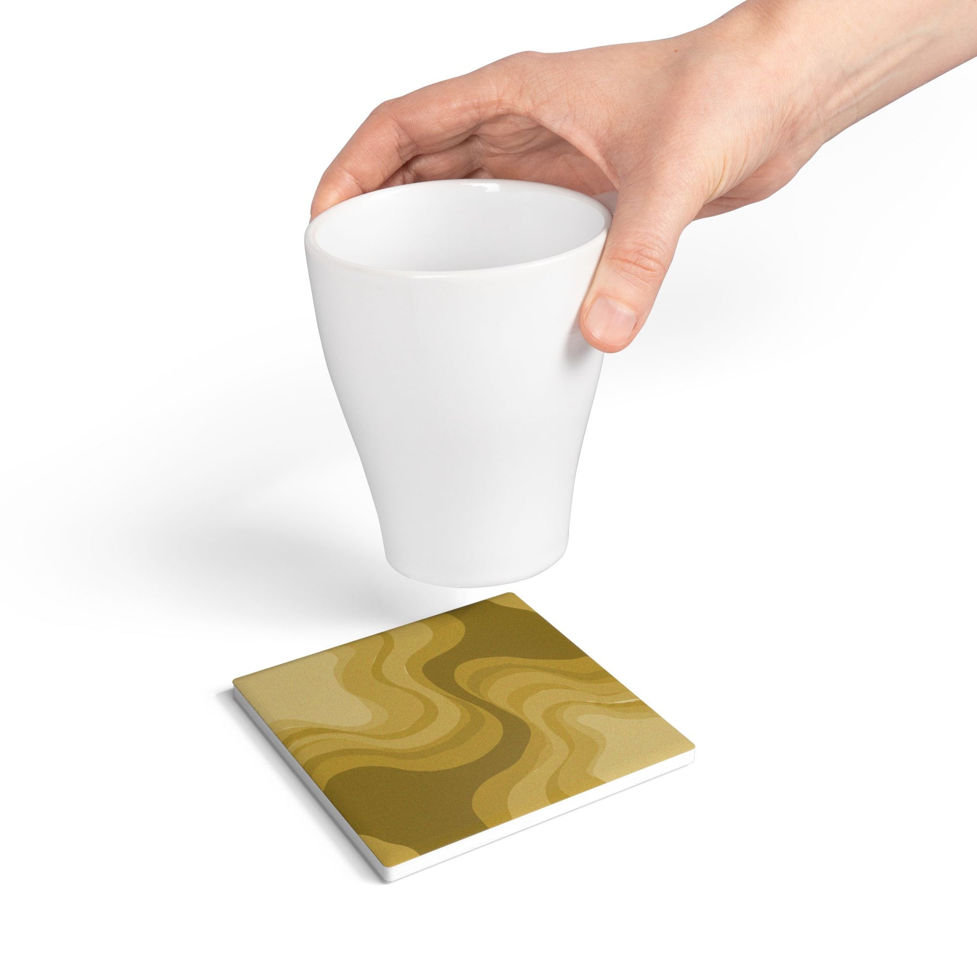 Brown Wavey 4" x 4" Square Ceramic Coaster