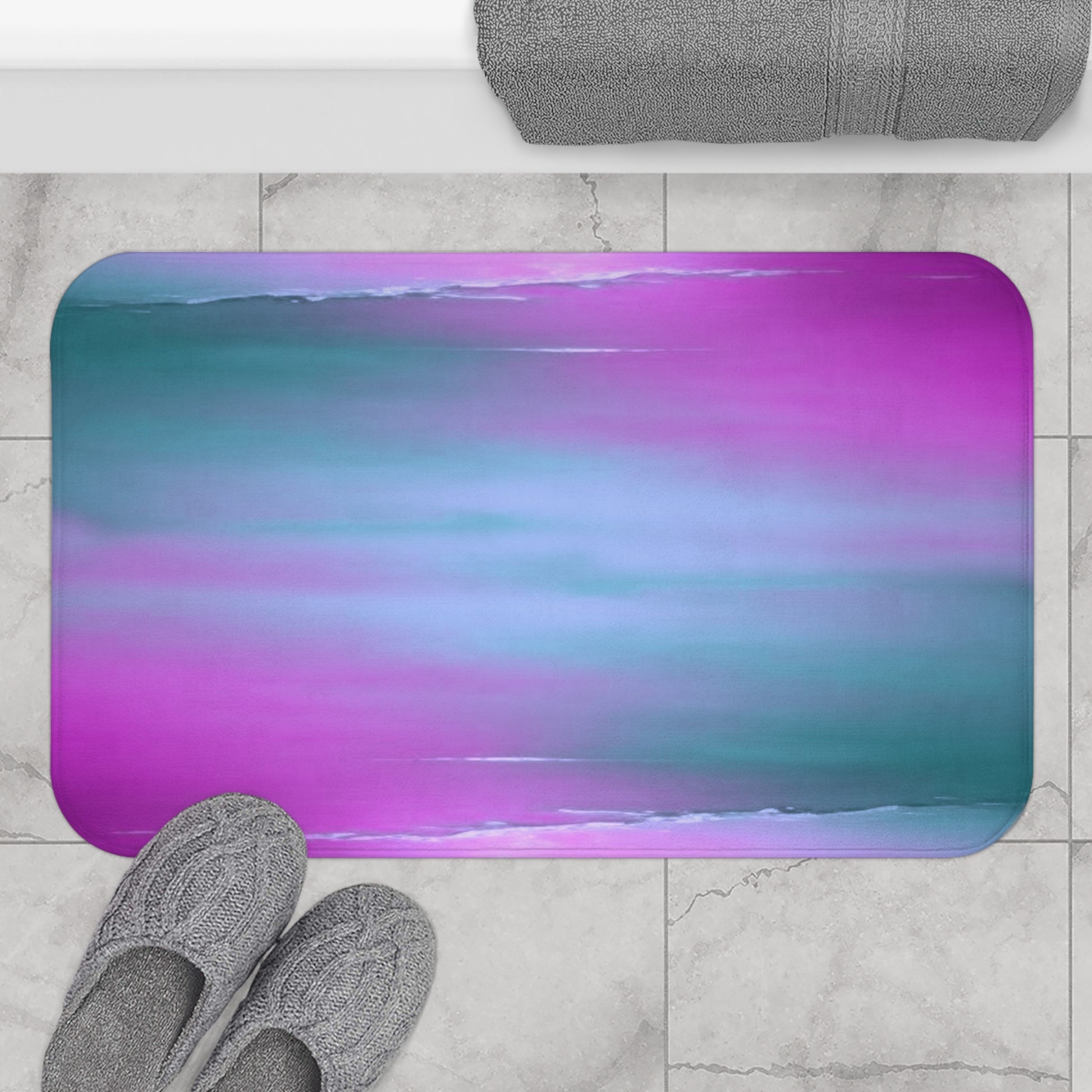 Dark Blue Green Sea Purple Fog 34" x 21" Bath Mat