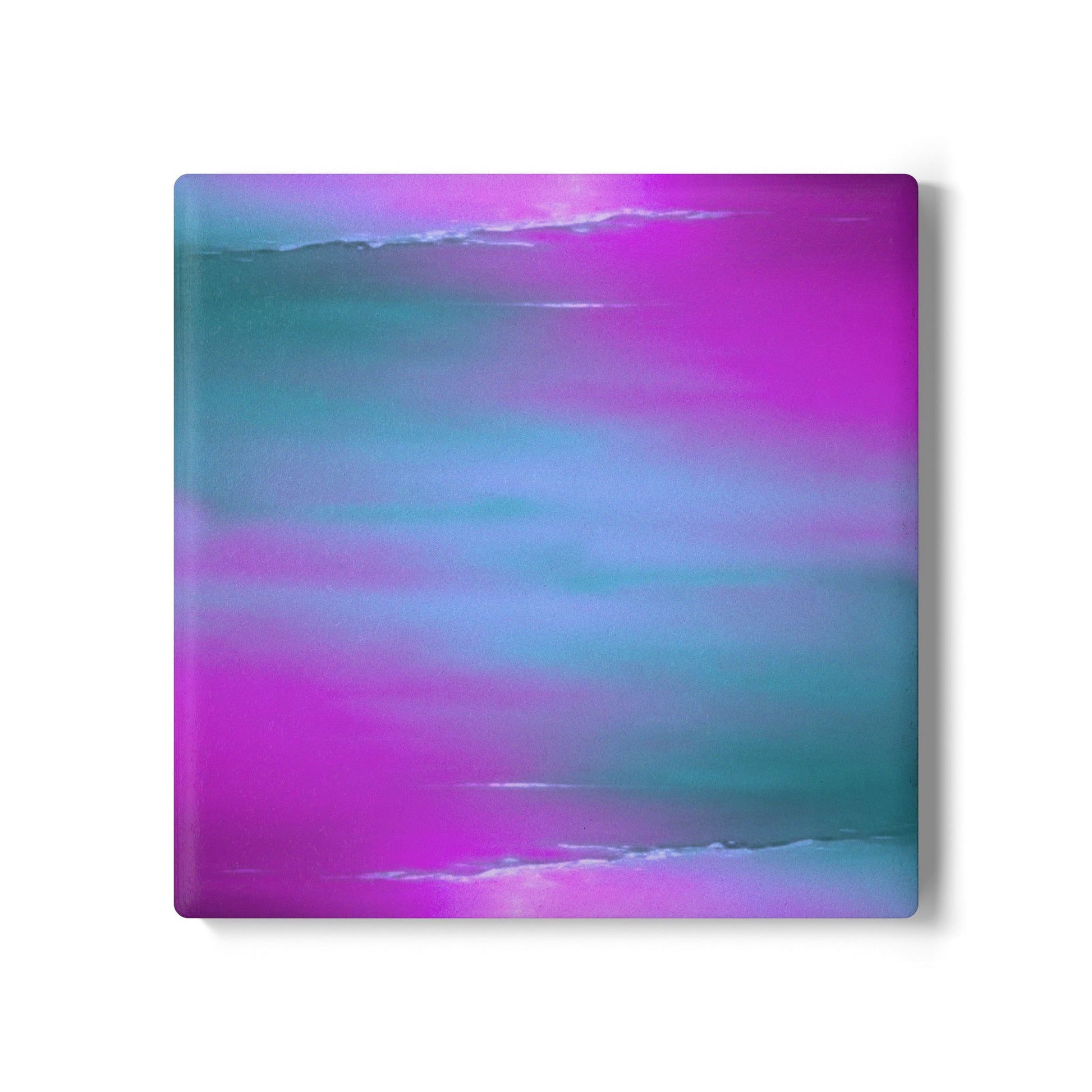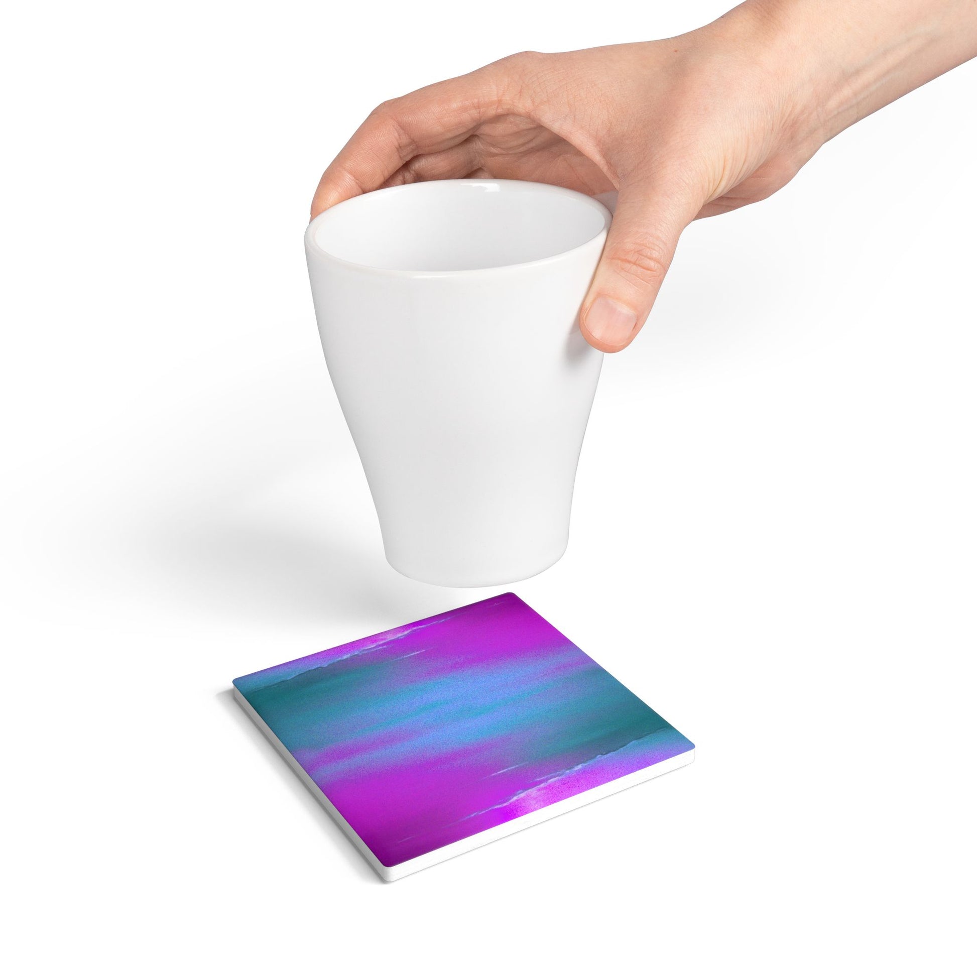 Dark Blue Green Sea Purple Fog 4" x 4" Square Ceramic Coaster