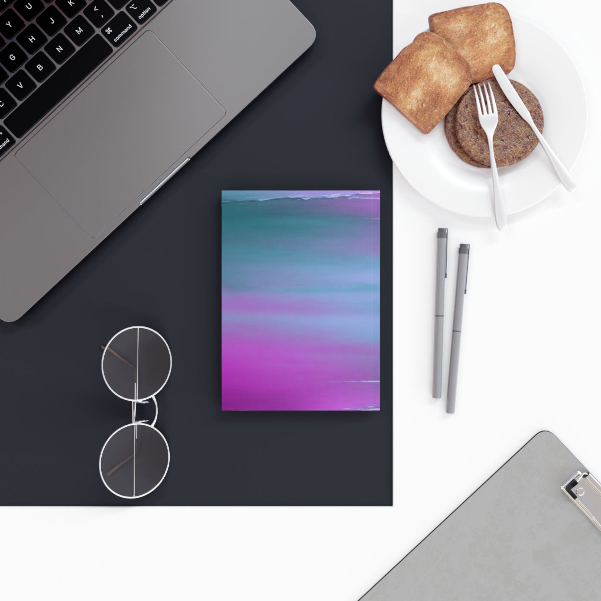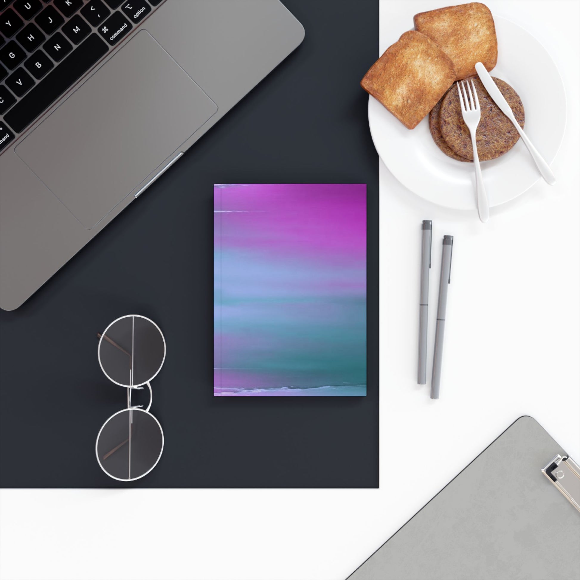 Dark Blue Green Sea Purple Fog 5.2" x 7.4" Hard Backed Journal with 128 blank pages