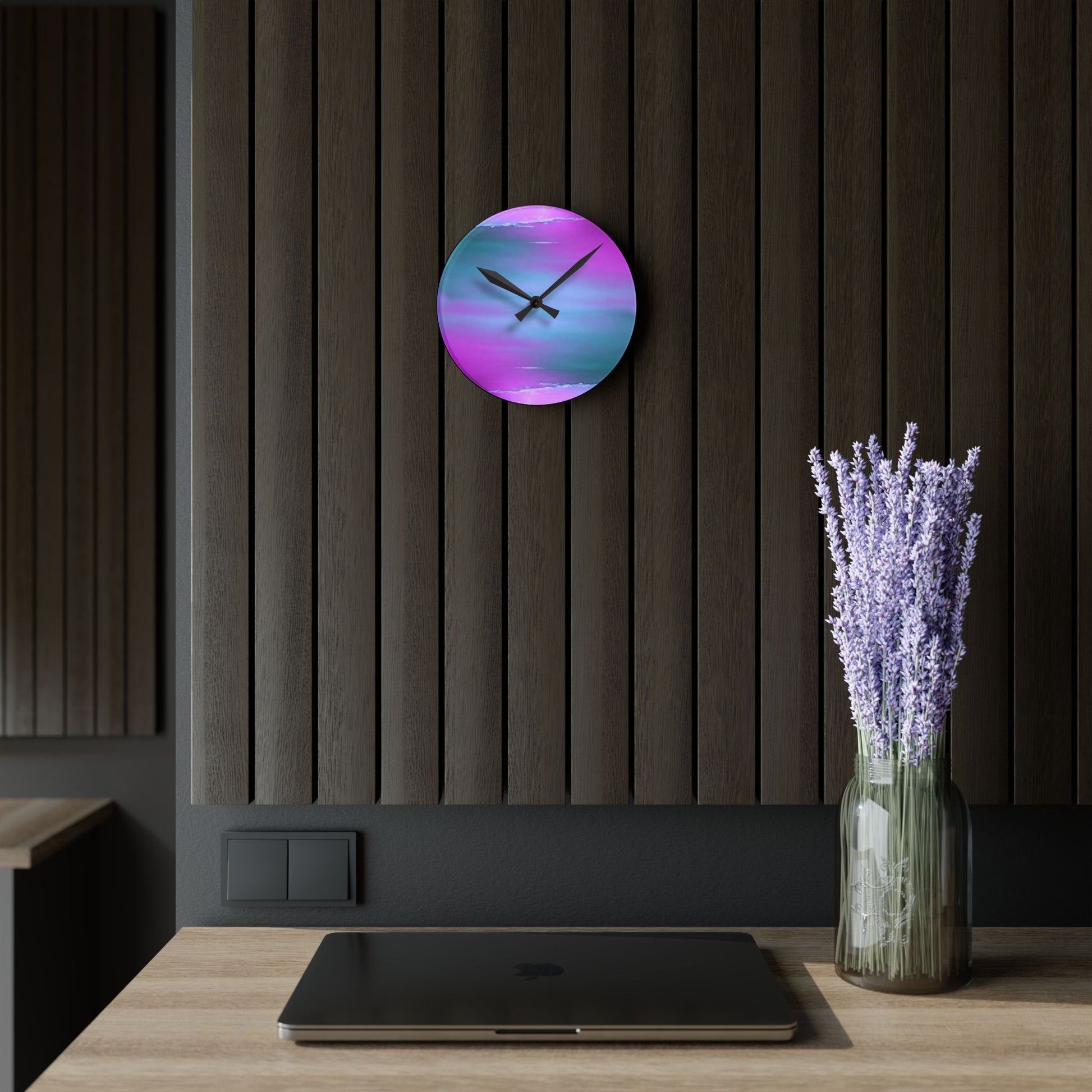 Dark Blue Green Sea Purple Fog Acrylic Round Wall Clock, 8" x 8"