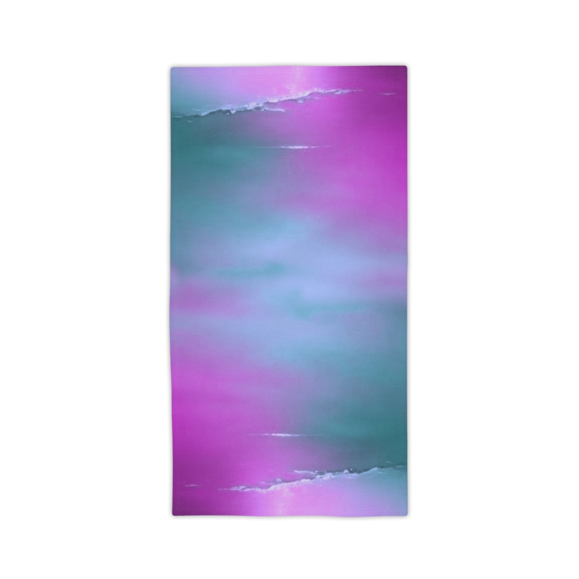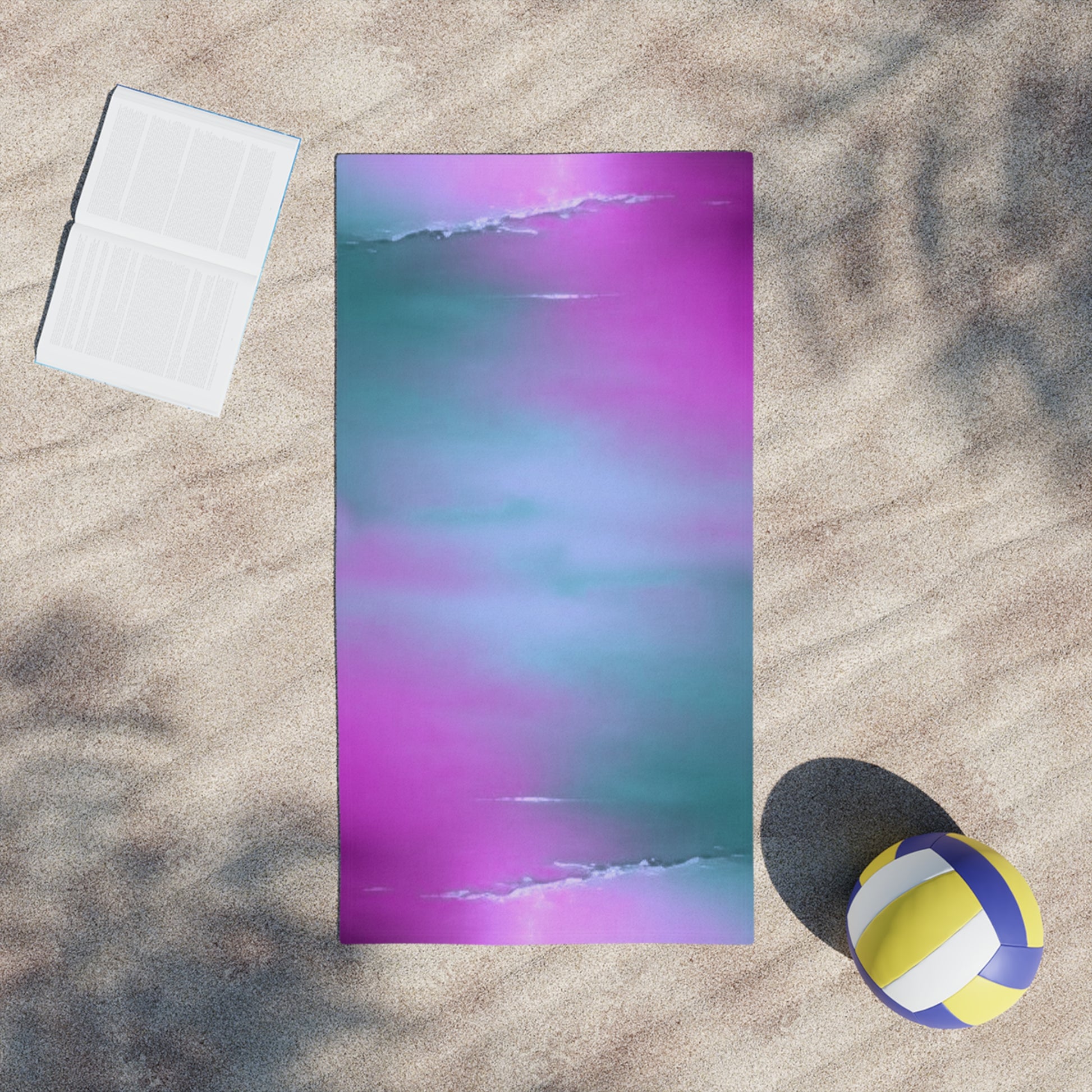 Dark Blue Green Sea Purple Fog Beach Towel, 24" x 44"