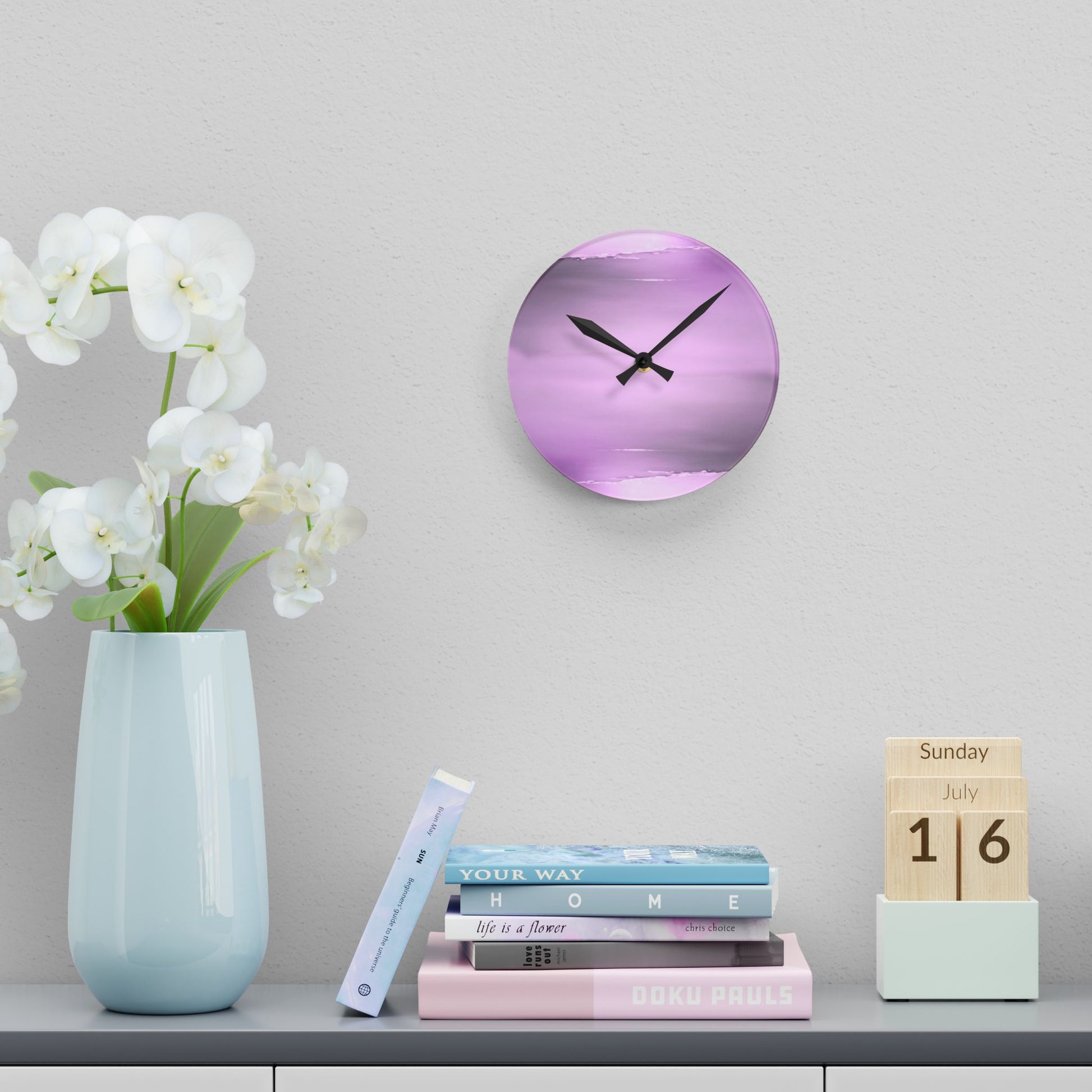 Why settle for a plain clock when yours can double as art? This acrylic wall clock is printed with my original, copyright-protected design and made just for you — no two are exactly alike. The high-gloss finish and crystal-clear acrylic give it a sleek, modern look, while the bold artwork makes it a true conversation starter.