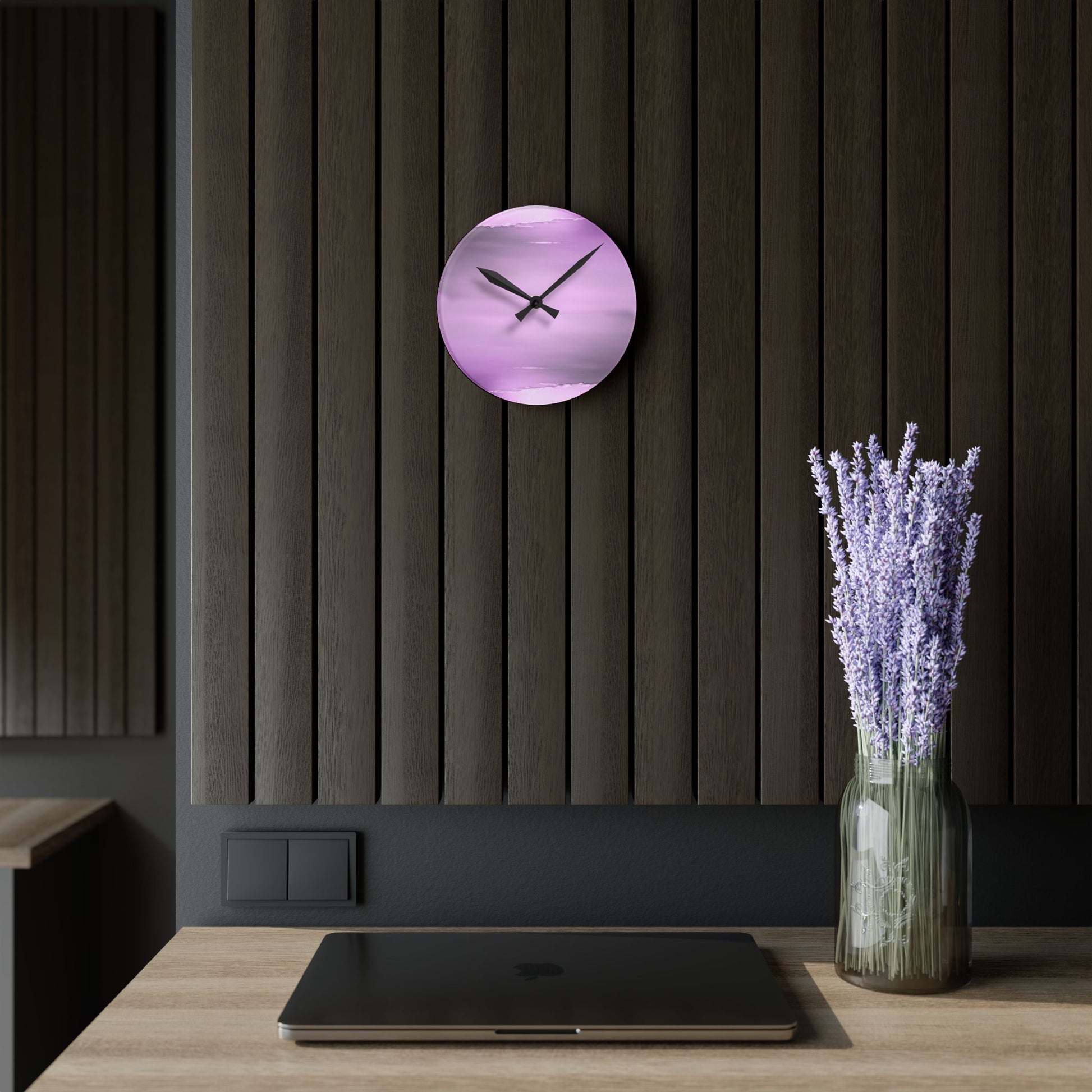 Dark Pink Sea Amethyst Fog Acrylic Round Wall Clock, 8" x 8"