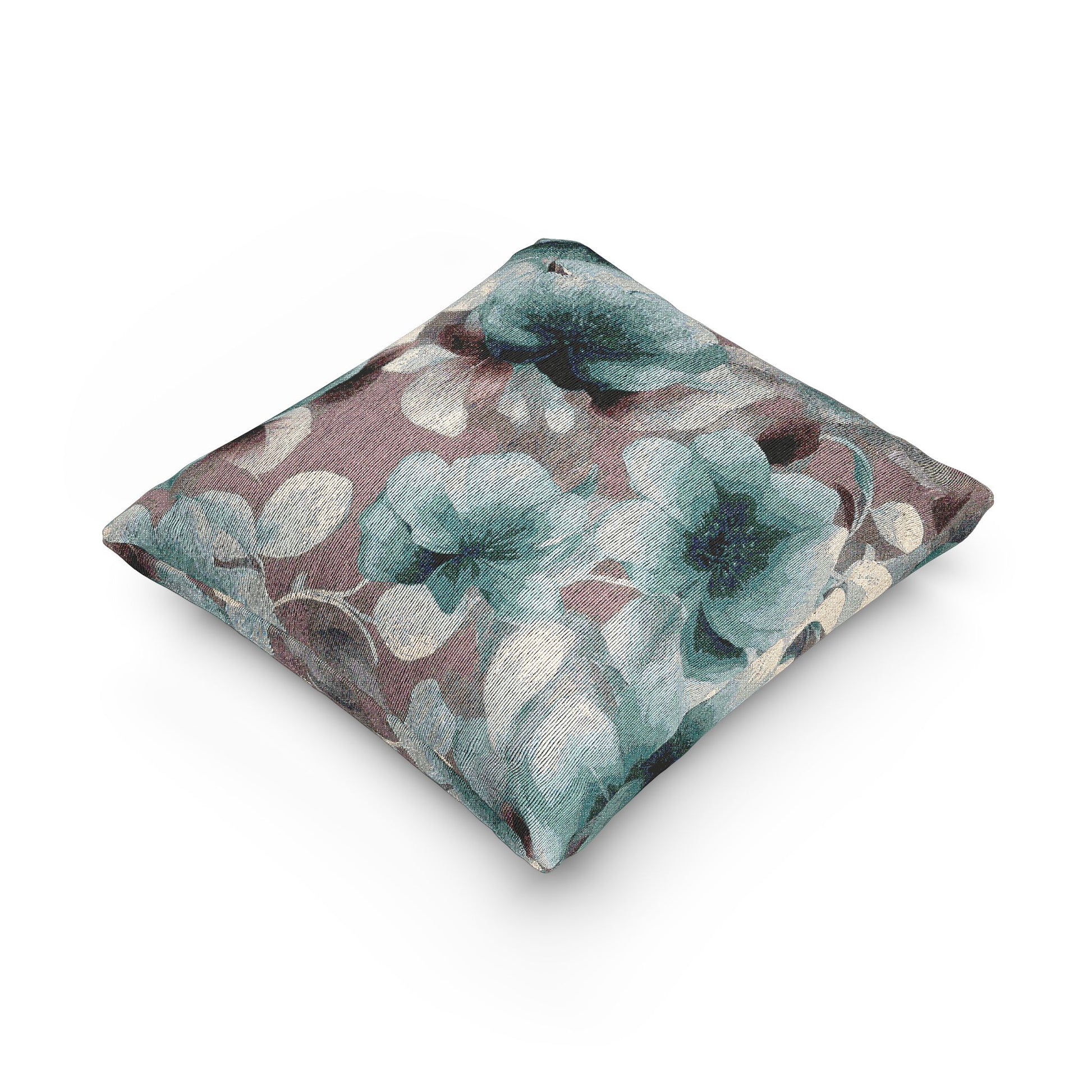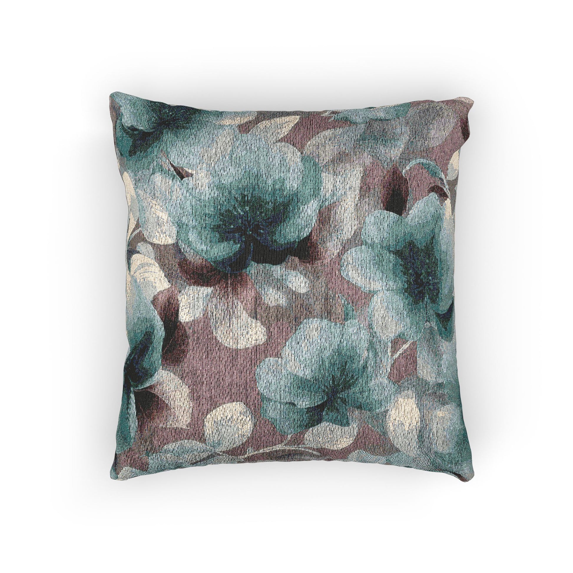 Deep Blue Florals Woven Pillow, 17" x 18"