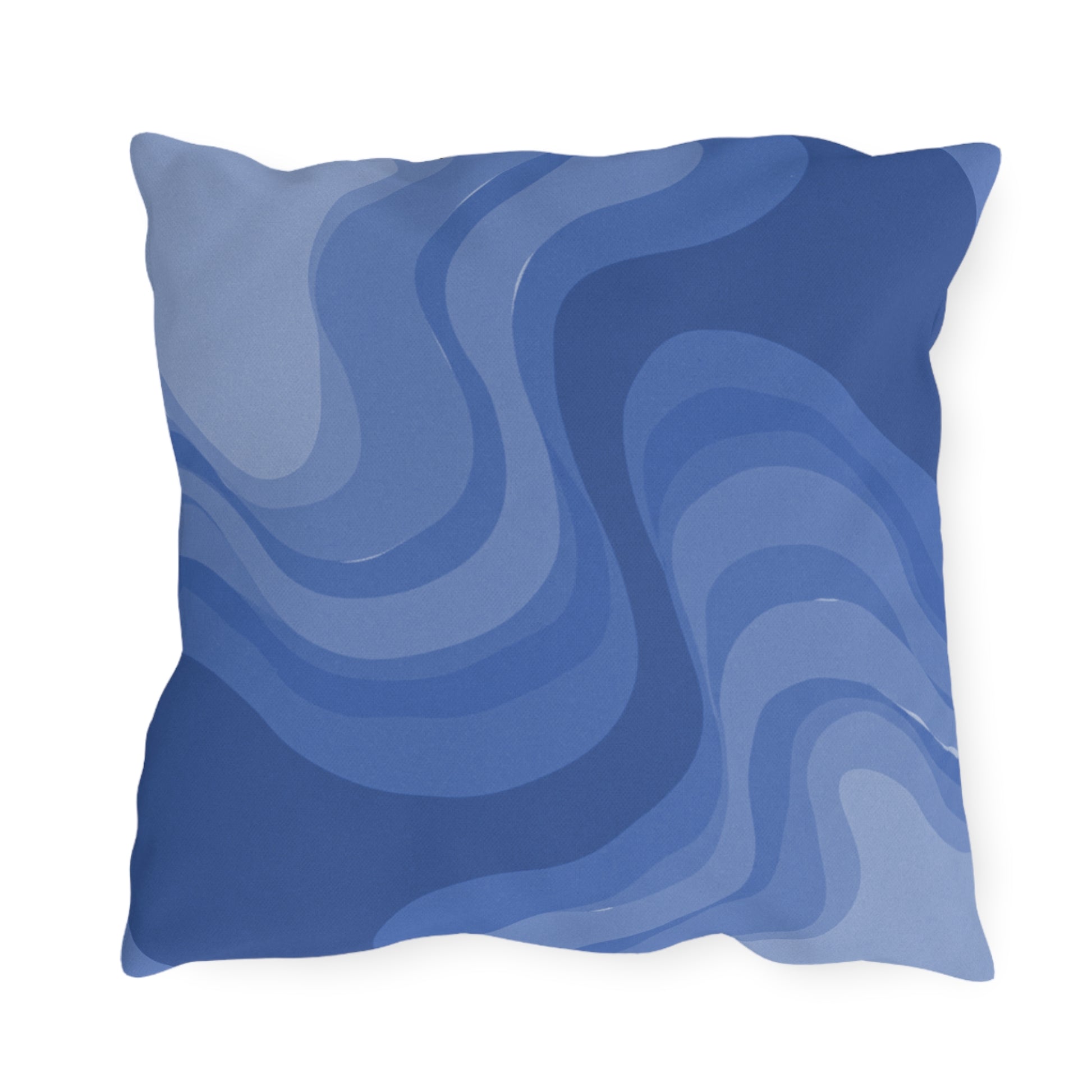 Deep Blue Wavey 18" x 18" Outdoor Pillow