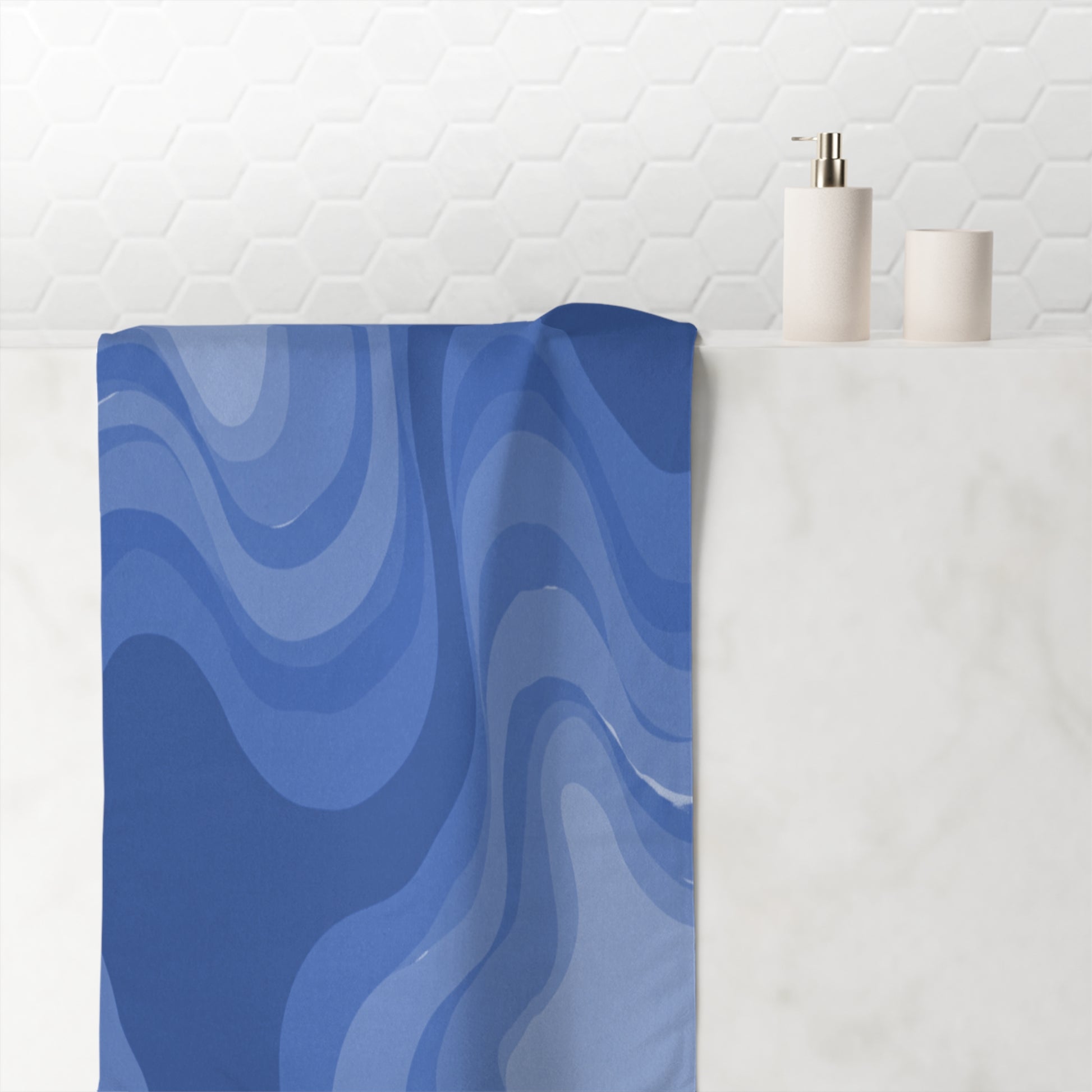 Deep Blue Wavey 30" x 60" Mink-Cotton Towel (50% polyester, 50% cotton)