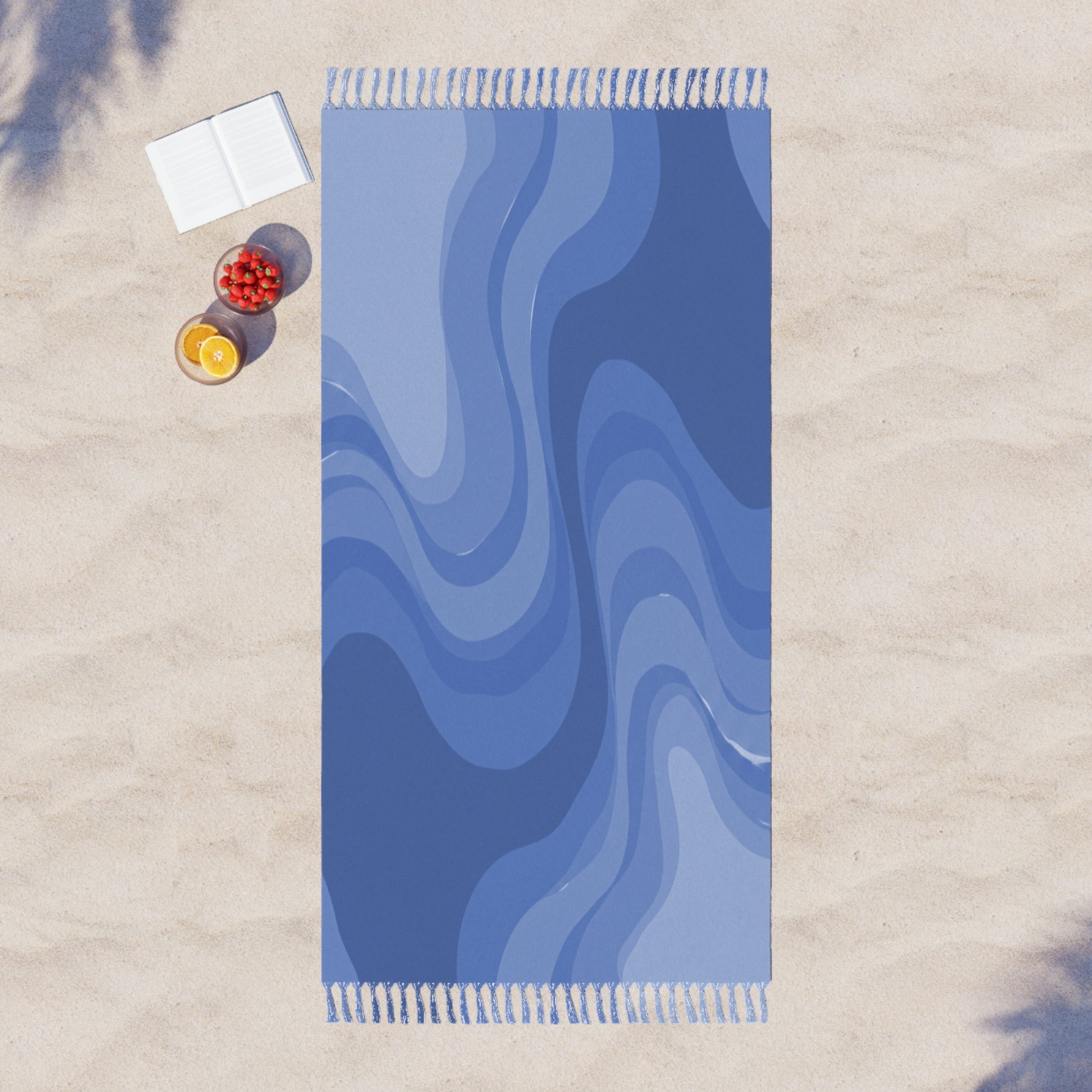 Deep Blue Wavey 38" × 81" Boho Beach Cloth