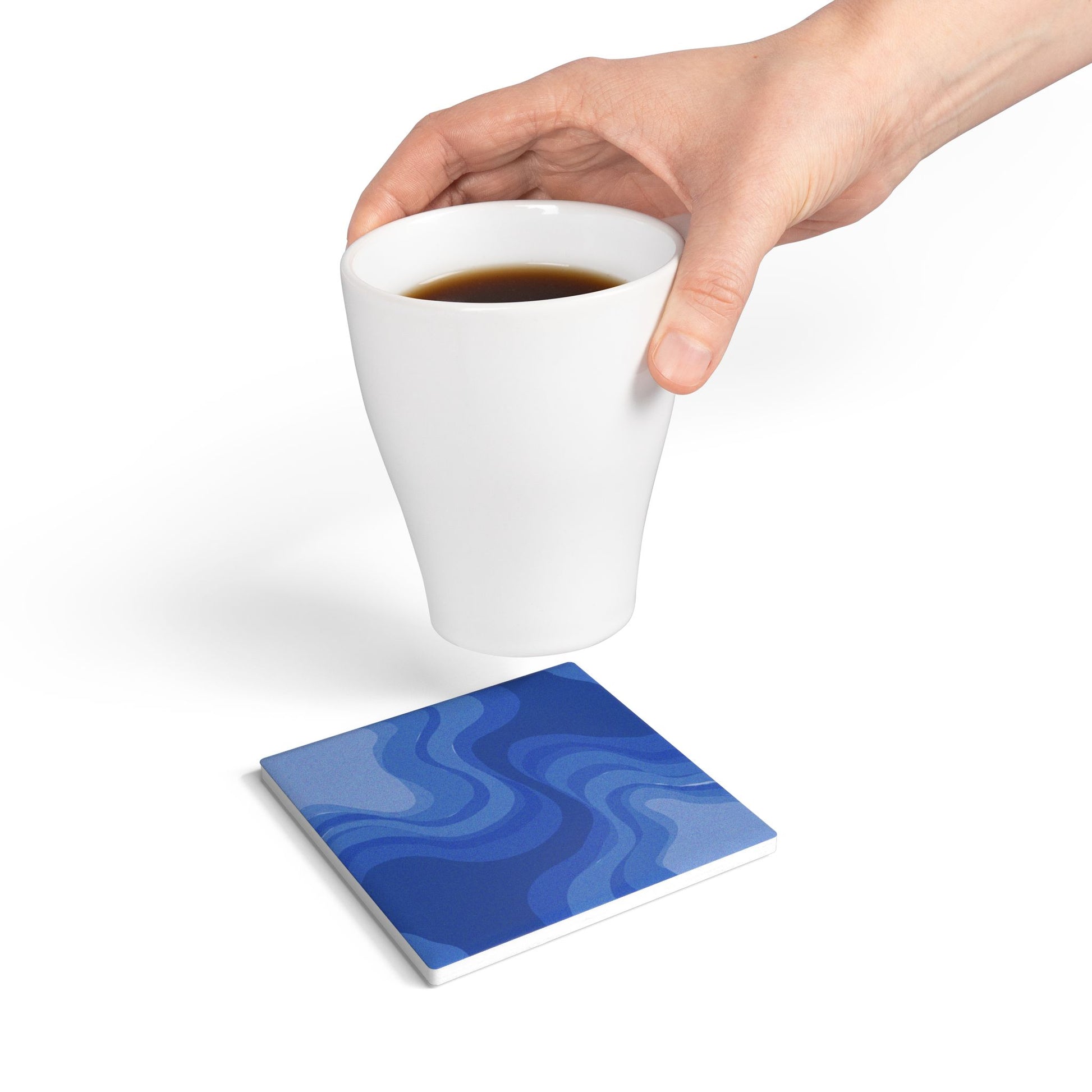 Deep Blue Wavey 4" x 4" Square Ceramic Coaster