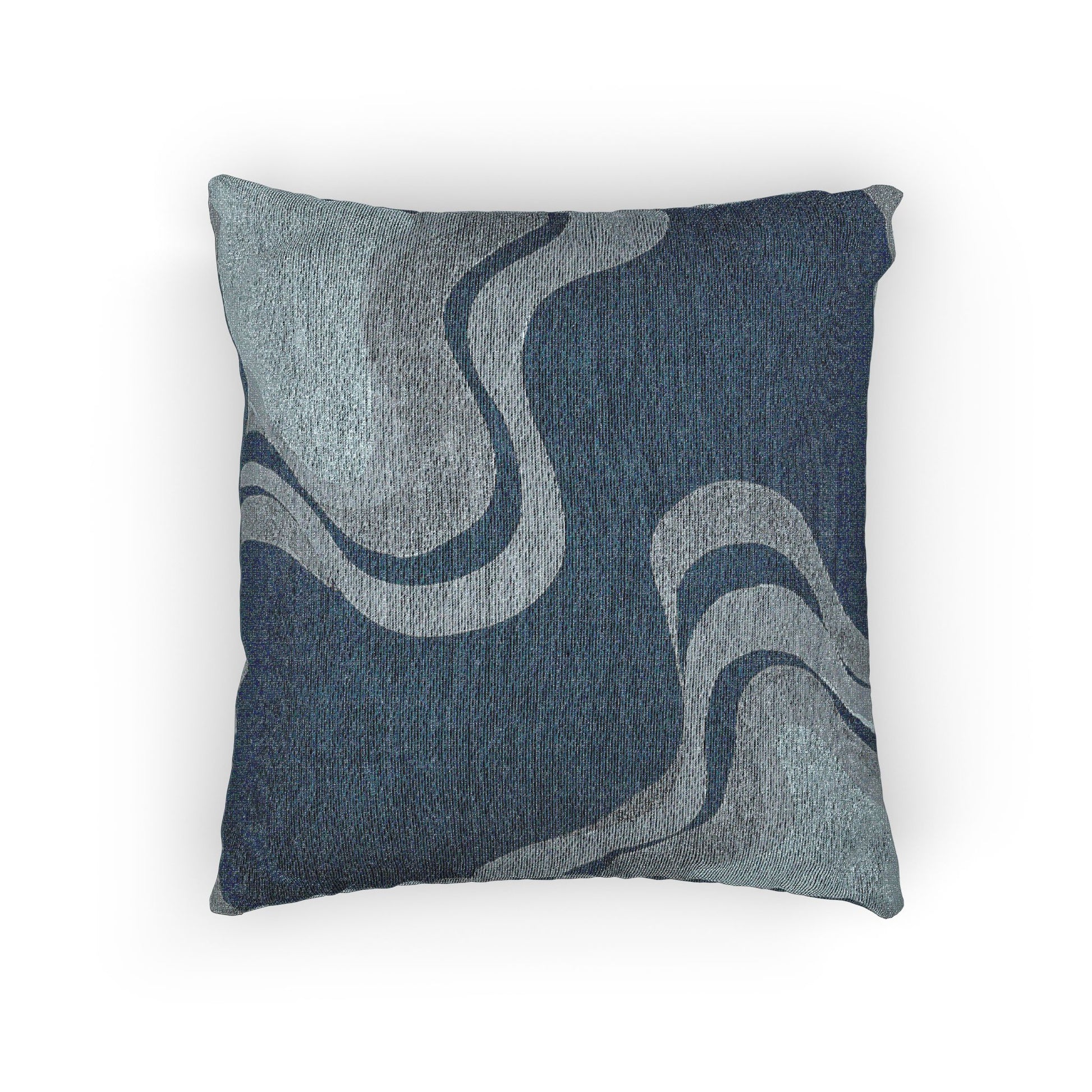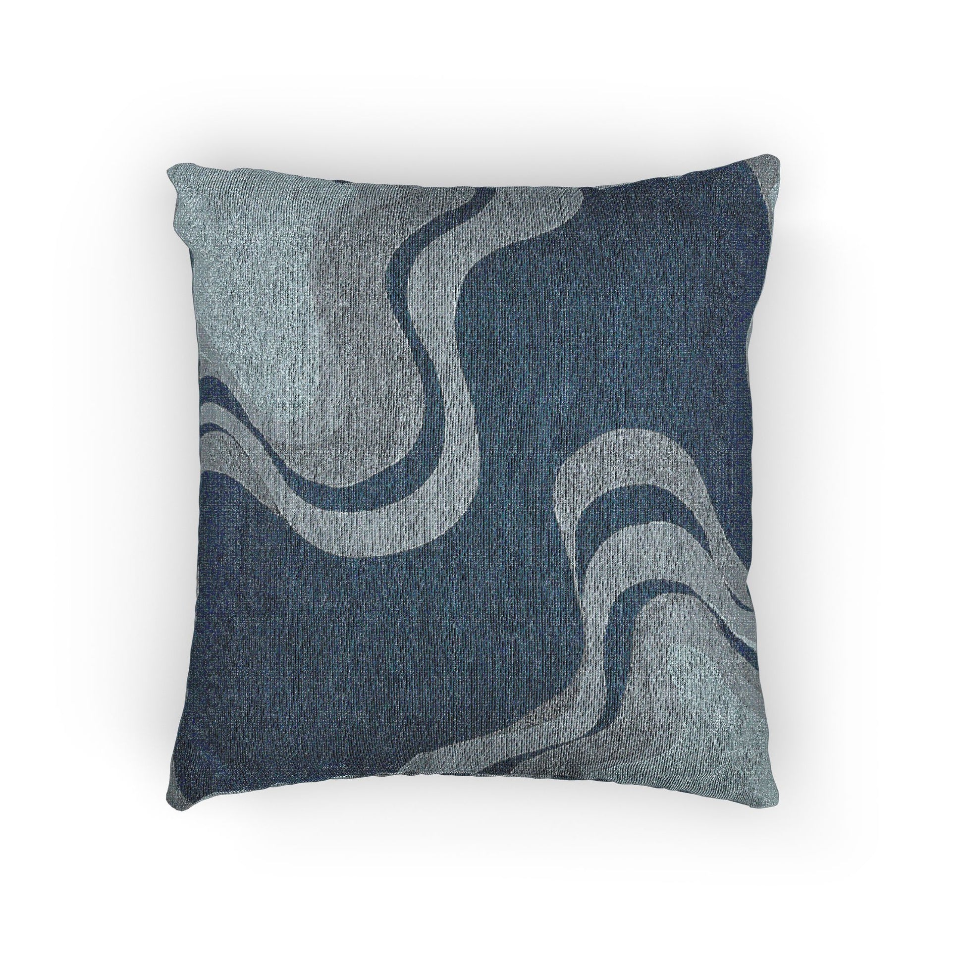 Deep Blue Wavey Woven Pillow, 17" x 18"