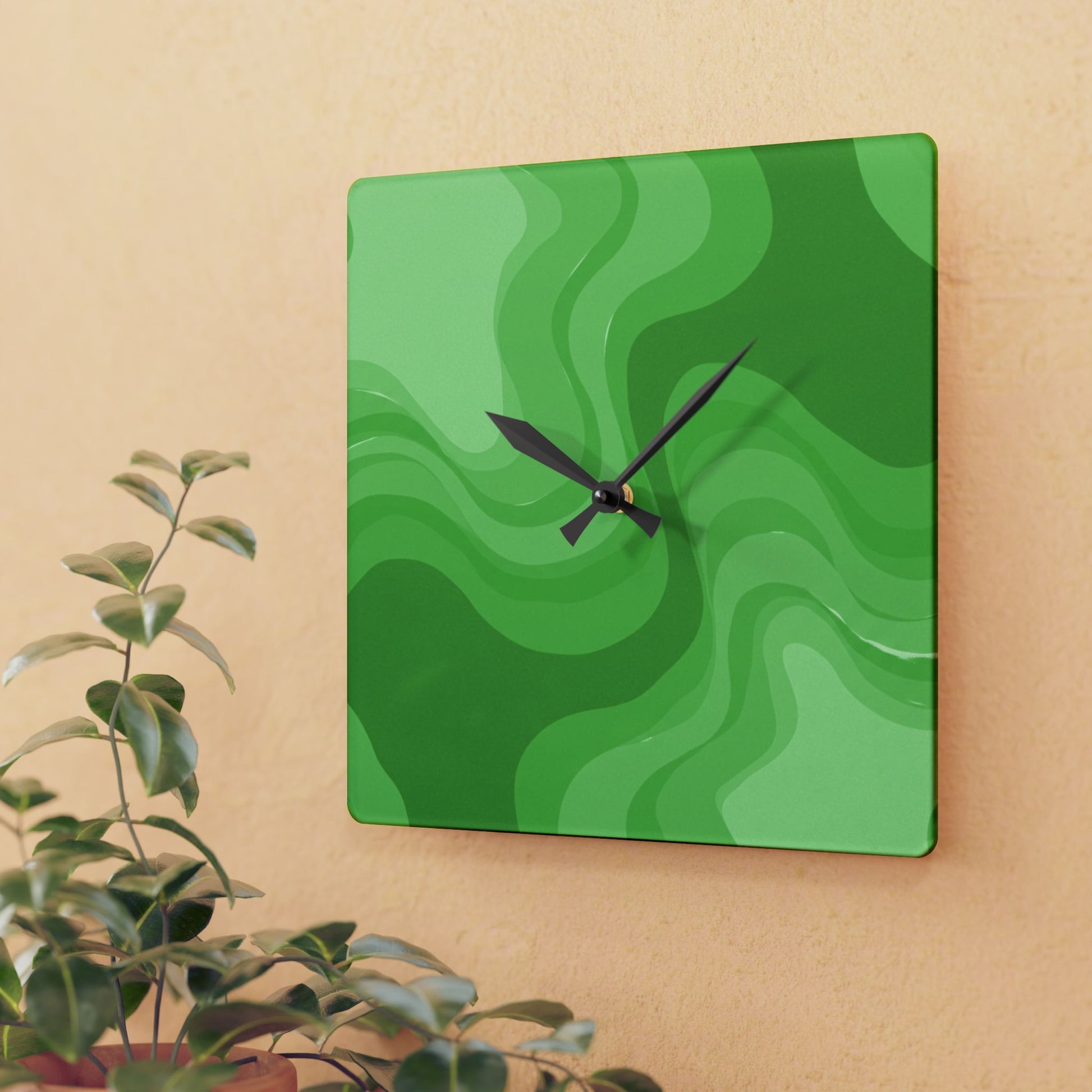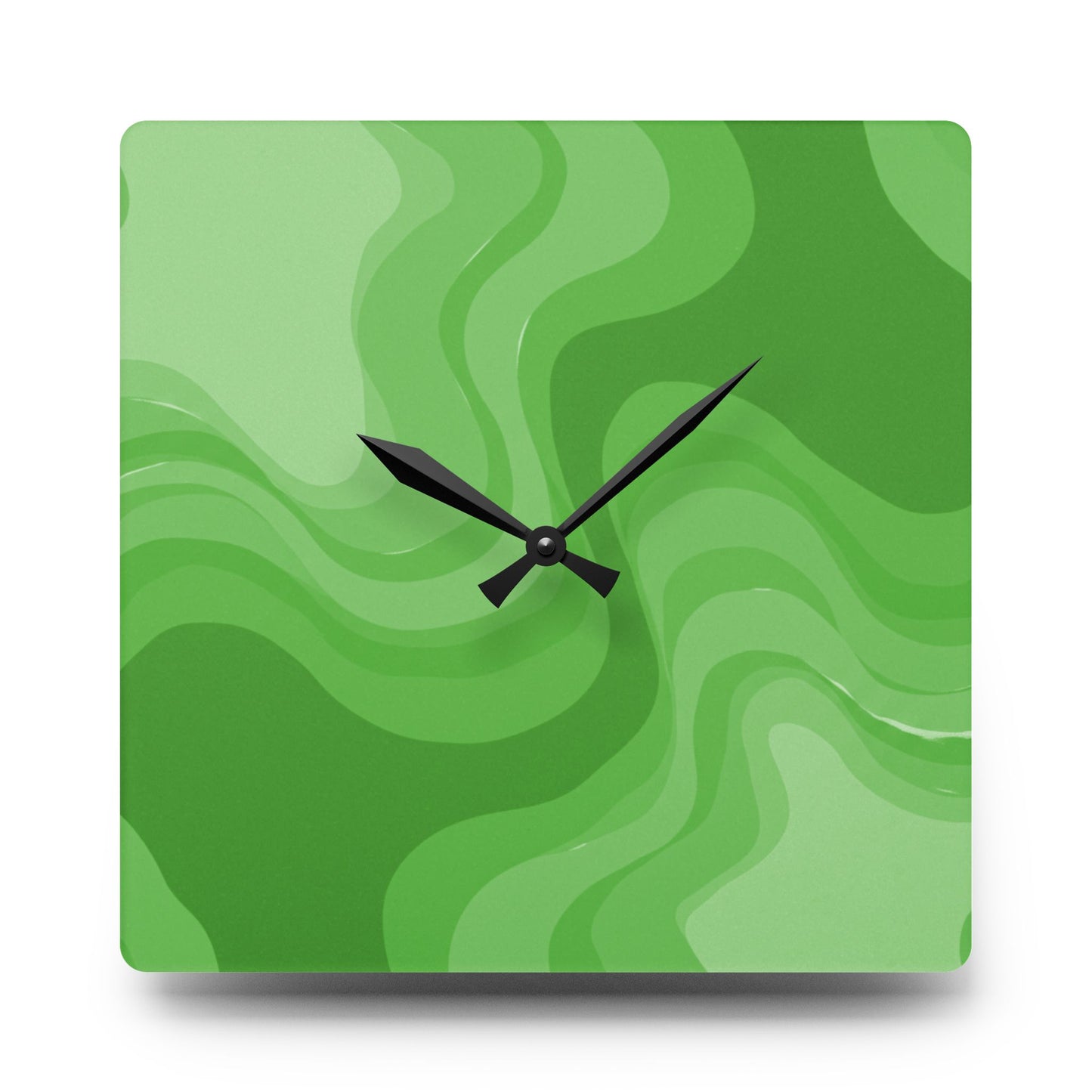 Greenie Meanie Wavey 10.75" x 10.75" Round or Square Acrylic Wall Clock