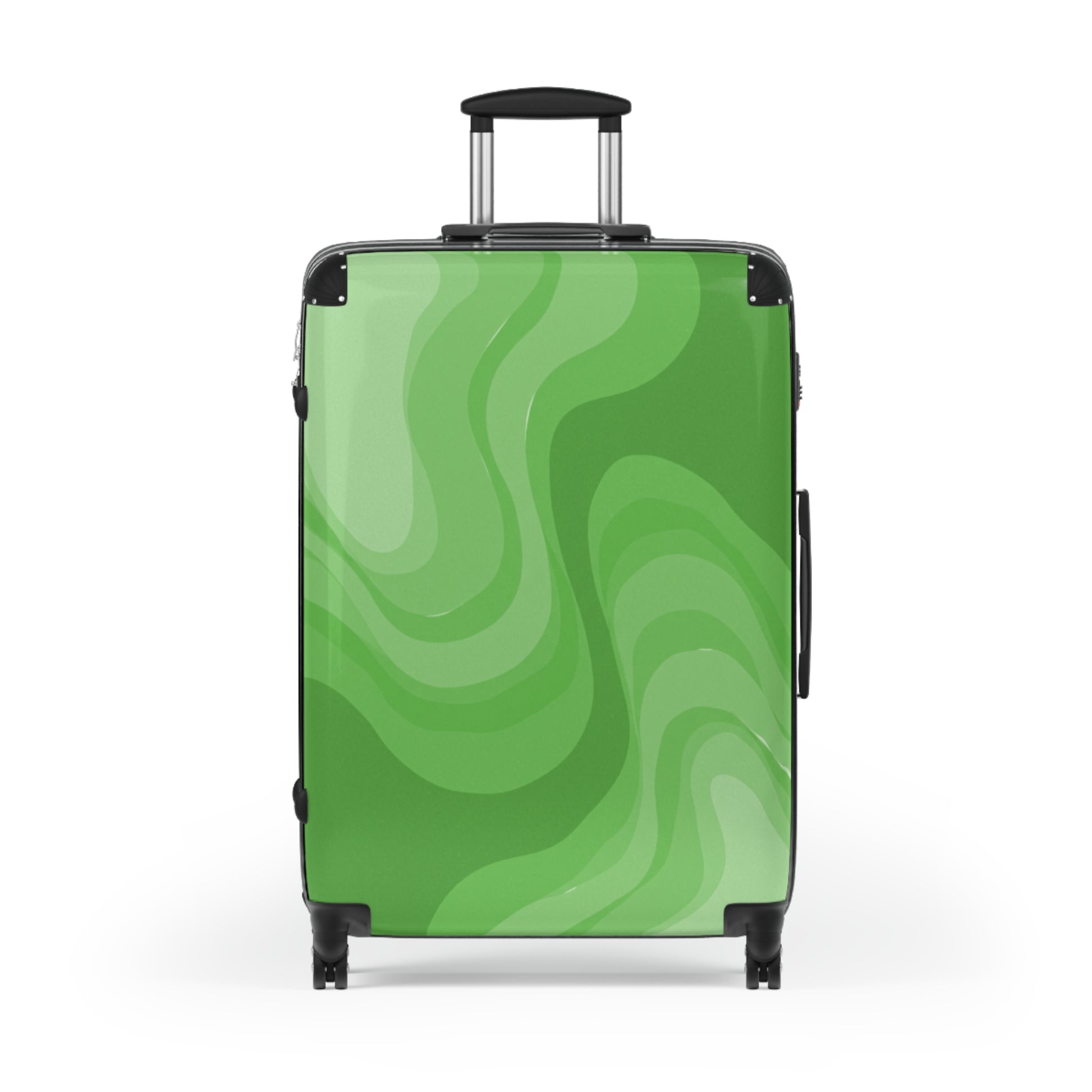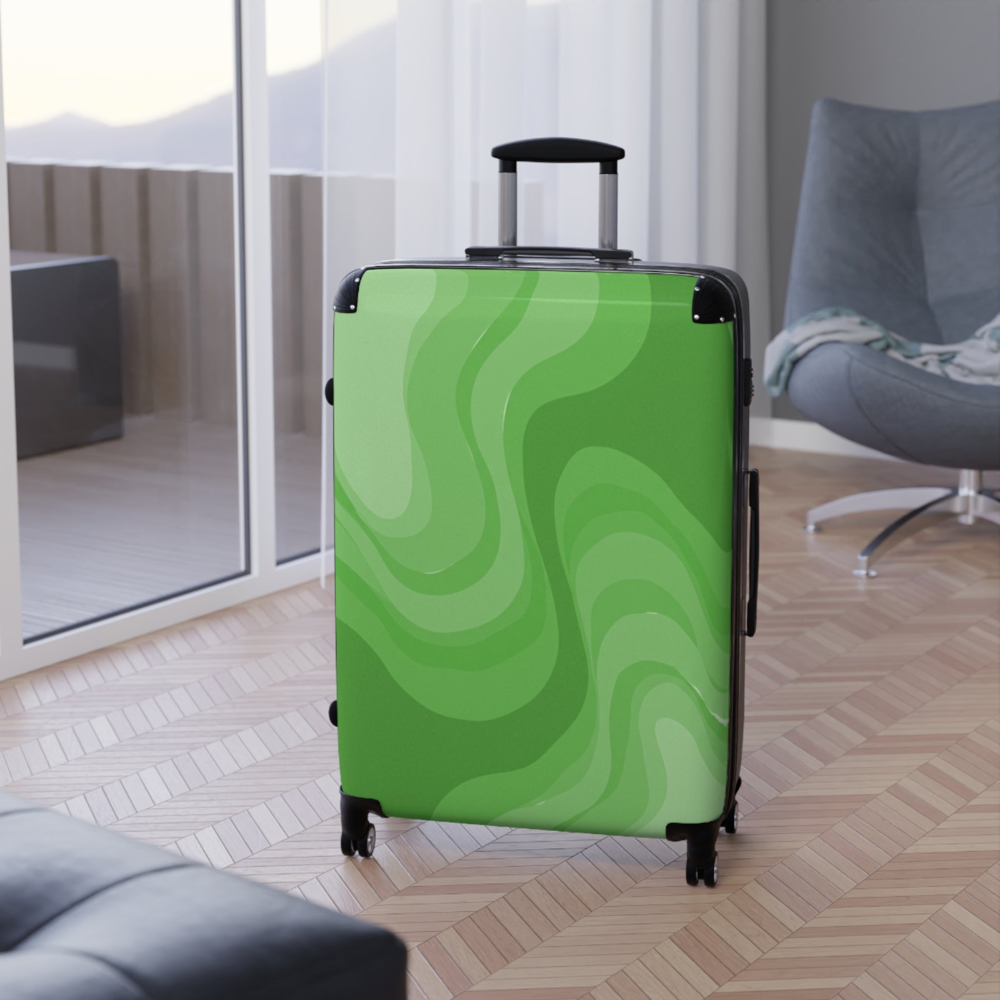 Greenie Meanie Wavey Large Suitcase with built in lock, 4 double-wheels, telescopic handle, and ABS back hard-shell