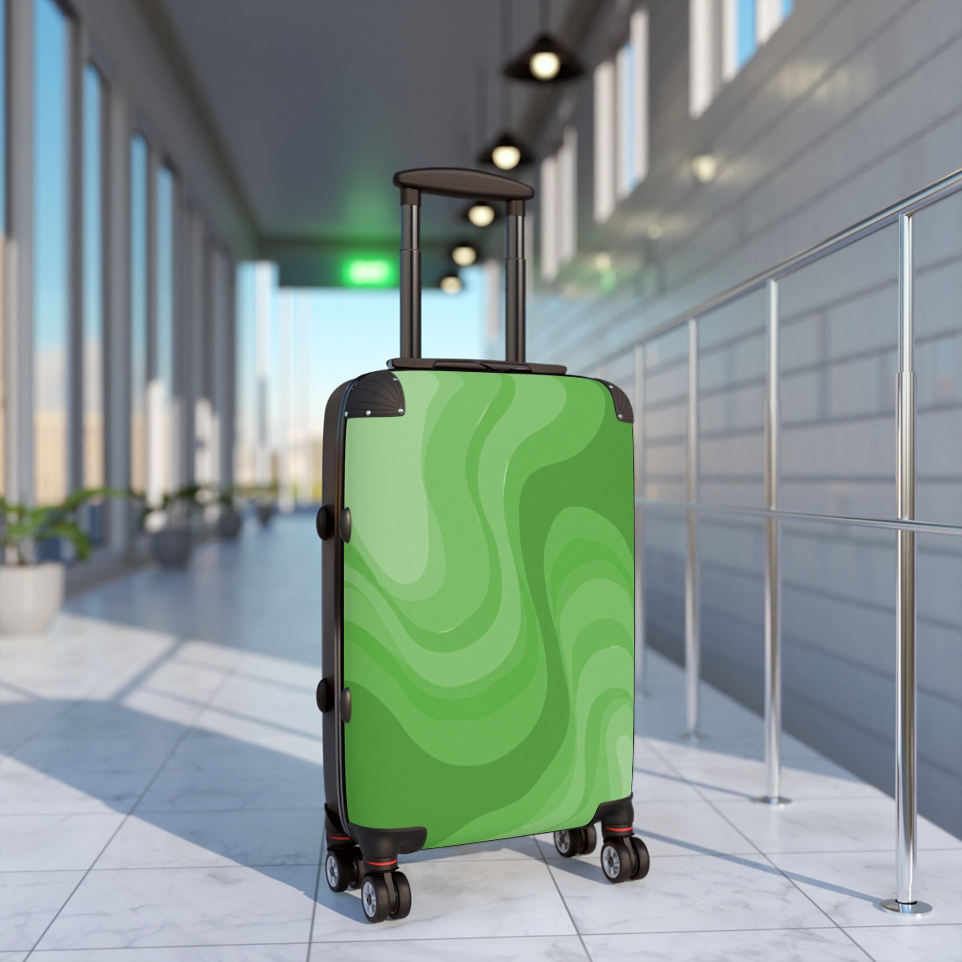 Greenie Meanie Wavey Small Suitcase with built in lock, 4 double-wheels, telescopic handle, and ABS back hard-shell
