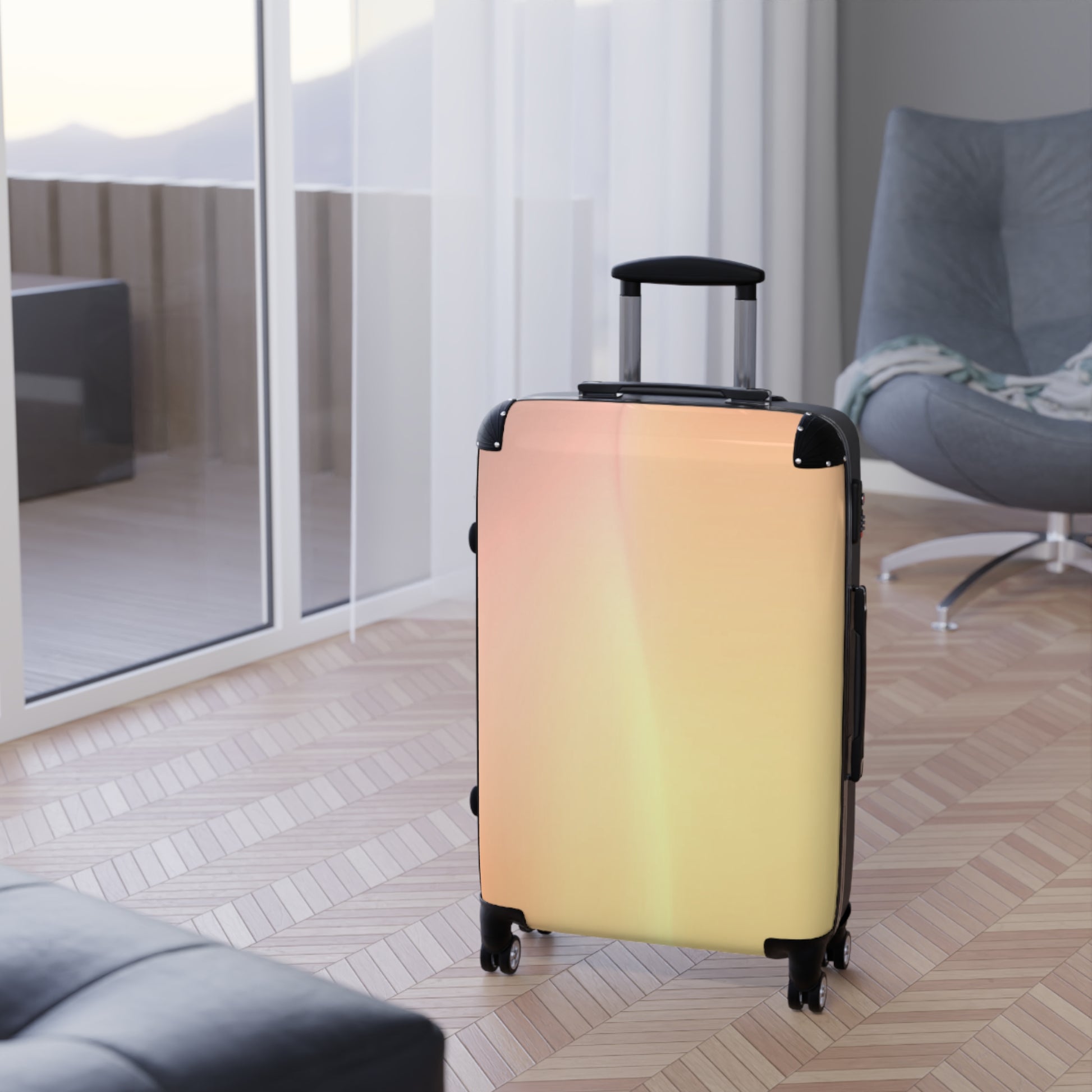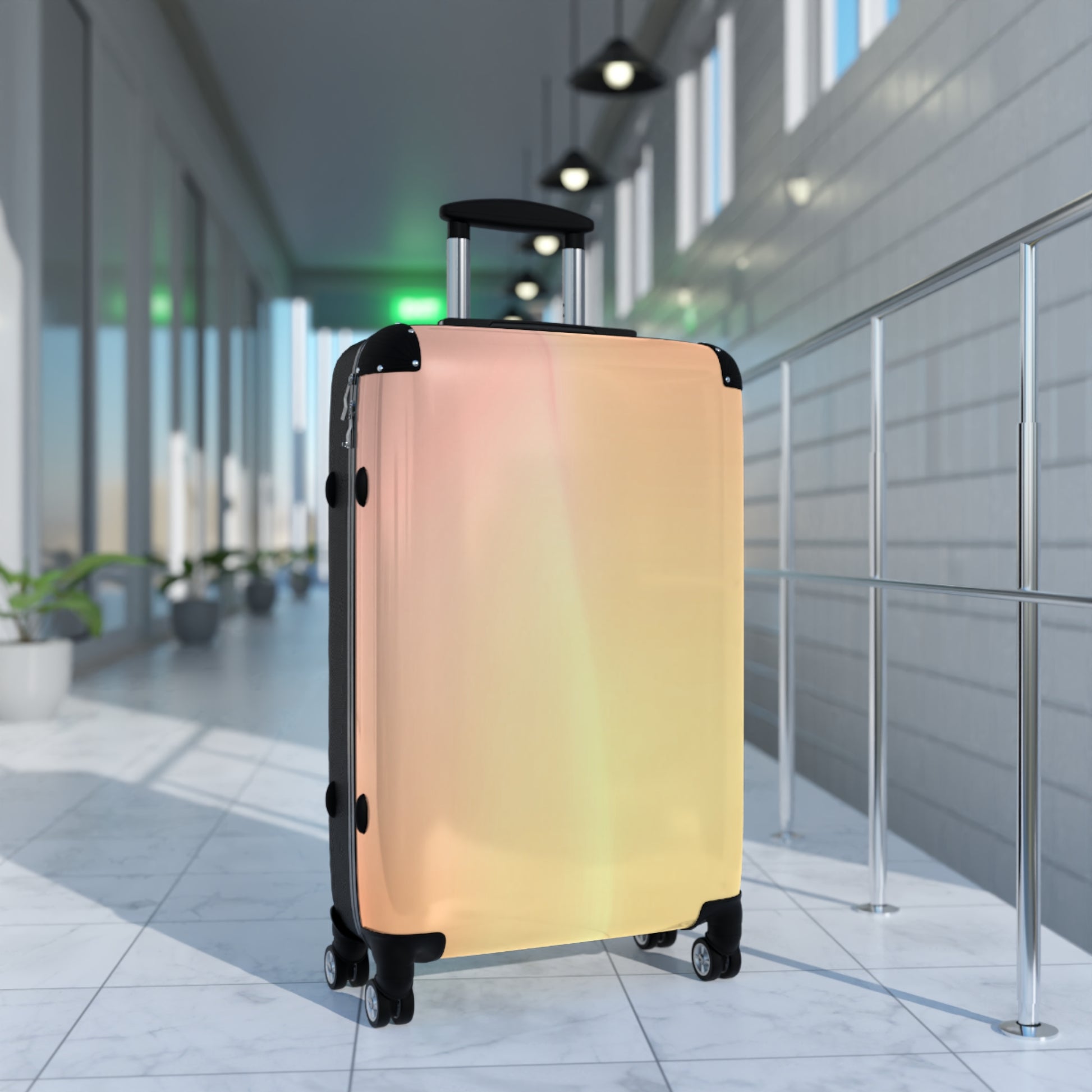 Hot Peach Fade Medium Suitcase with built in lock, 4 double-wheels, telescopic handle, and ABS back hard-shell