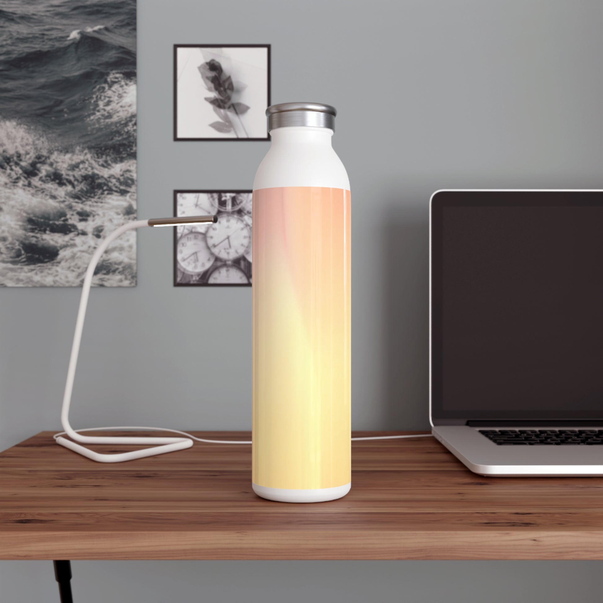 Hot Peach Fade Slim Water Bottle, 20 oz White