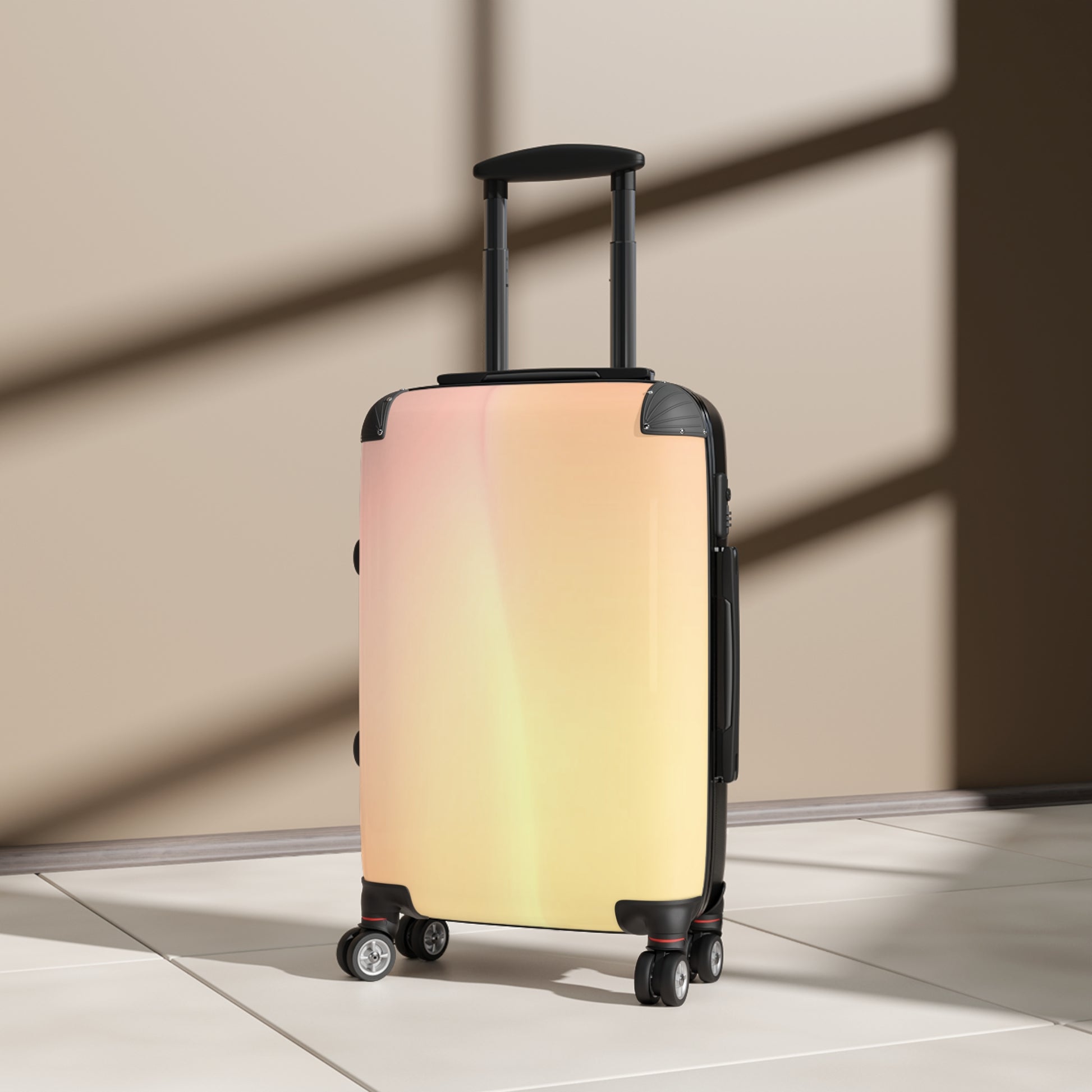 Hot Peach Fade Small Suitcase with built in lock, 4 double-wheels, telescopic handle, and ABS back hard-shell