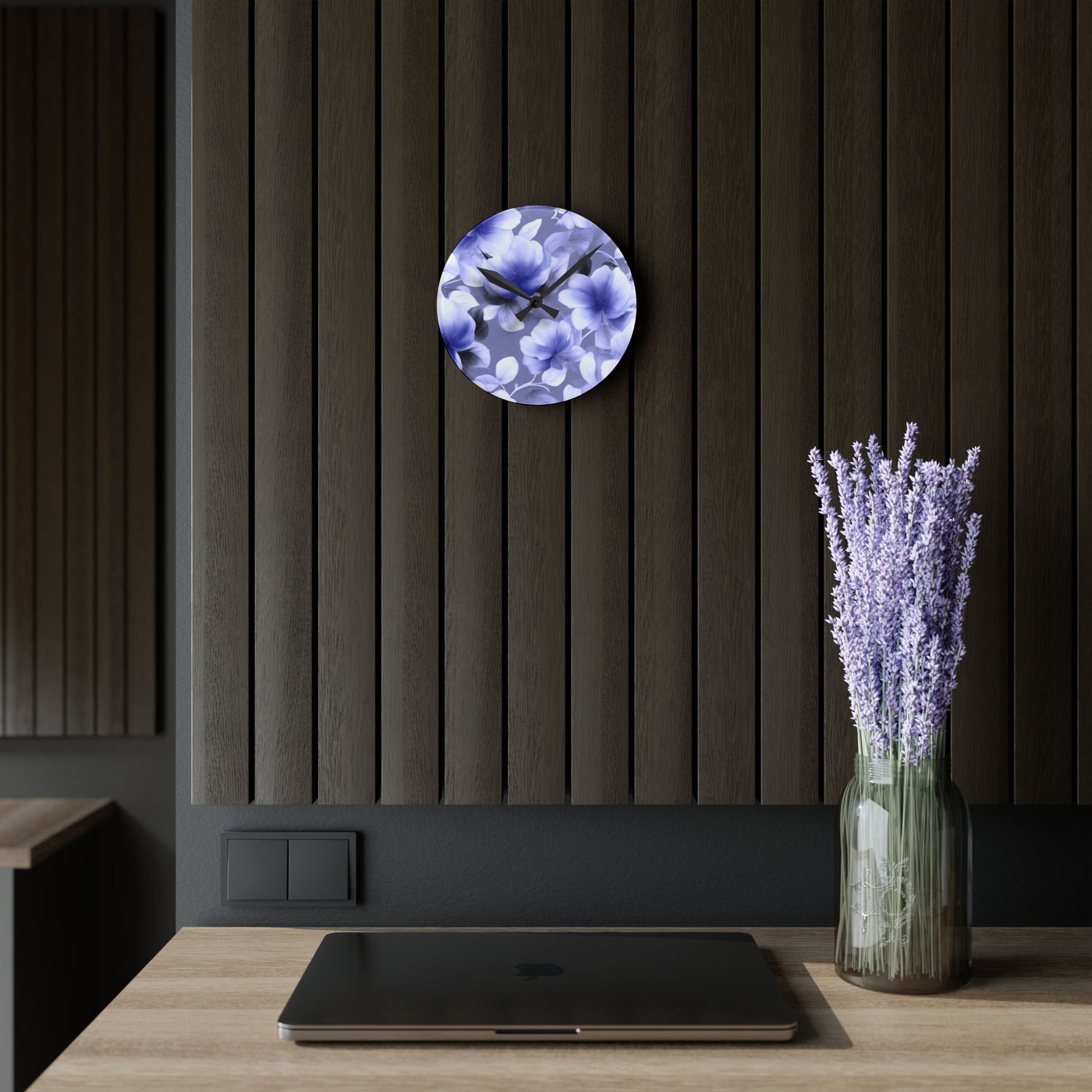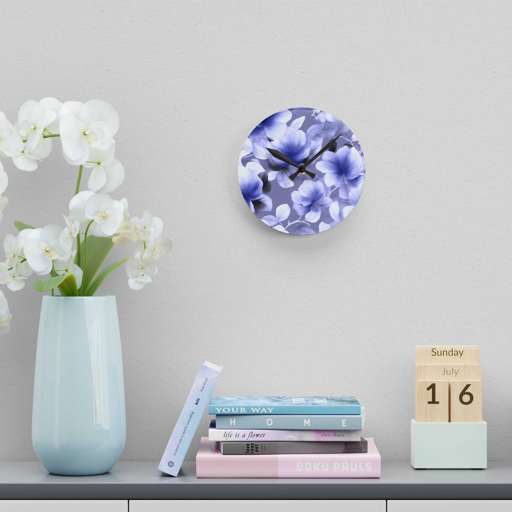 Indigo Blossom Floral Bunch Acrylic Round Wall Clock, 8" x 8"