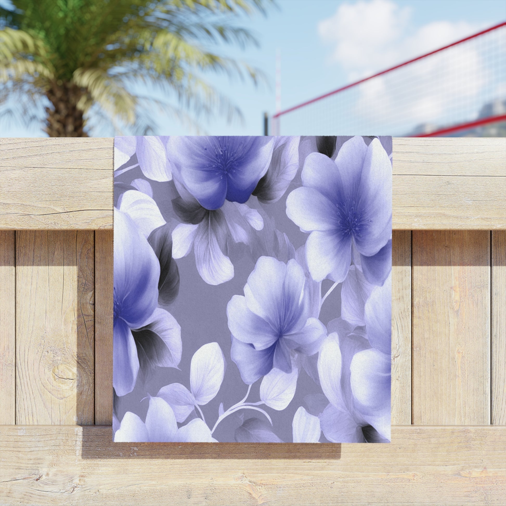 Indigo Blossom Floral Bunch Beach Towel, 18" x 27"