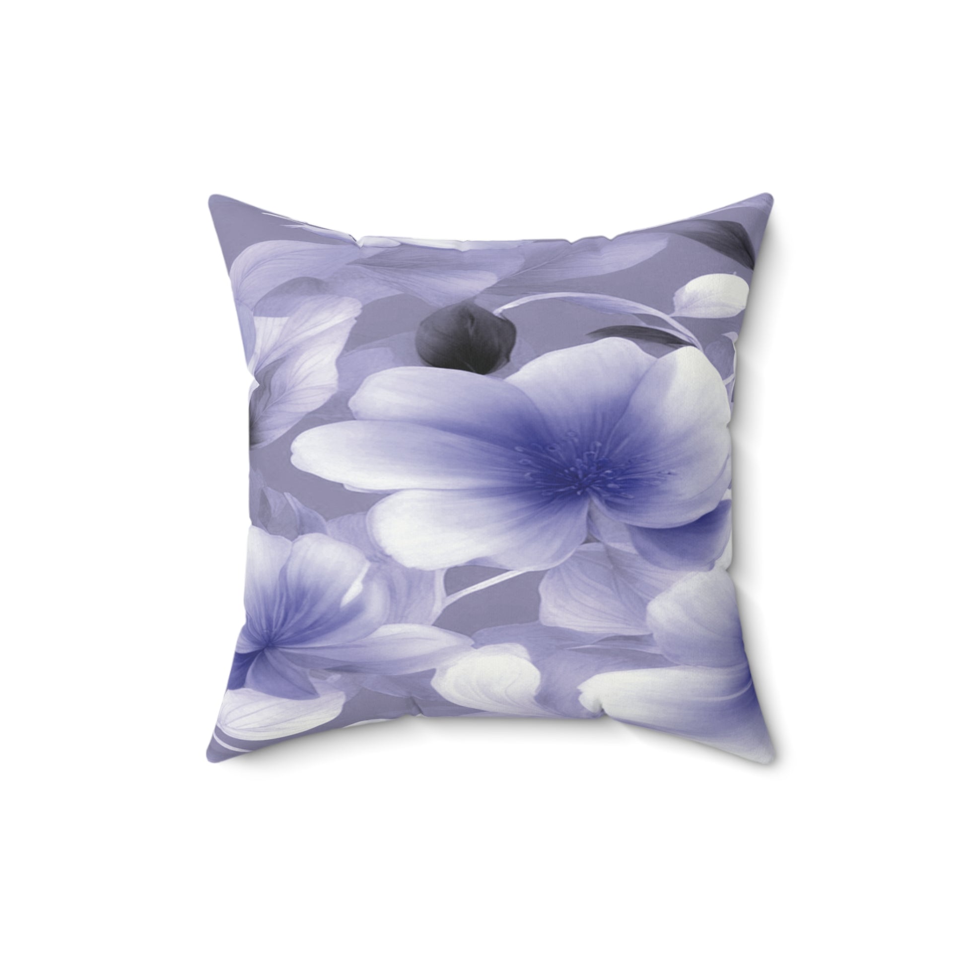 Indigo Blossom Floral Bunch Faux Suede Square Pillow, 16" x 16"