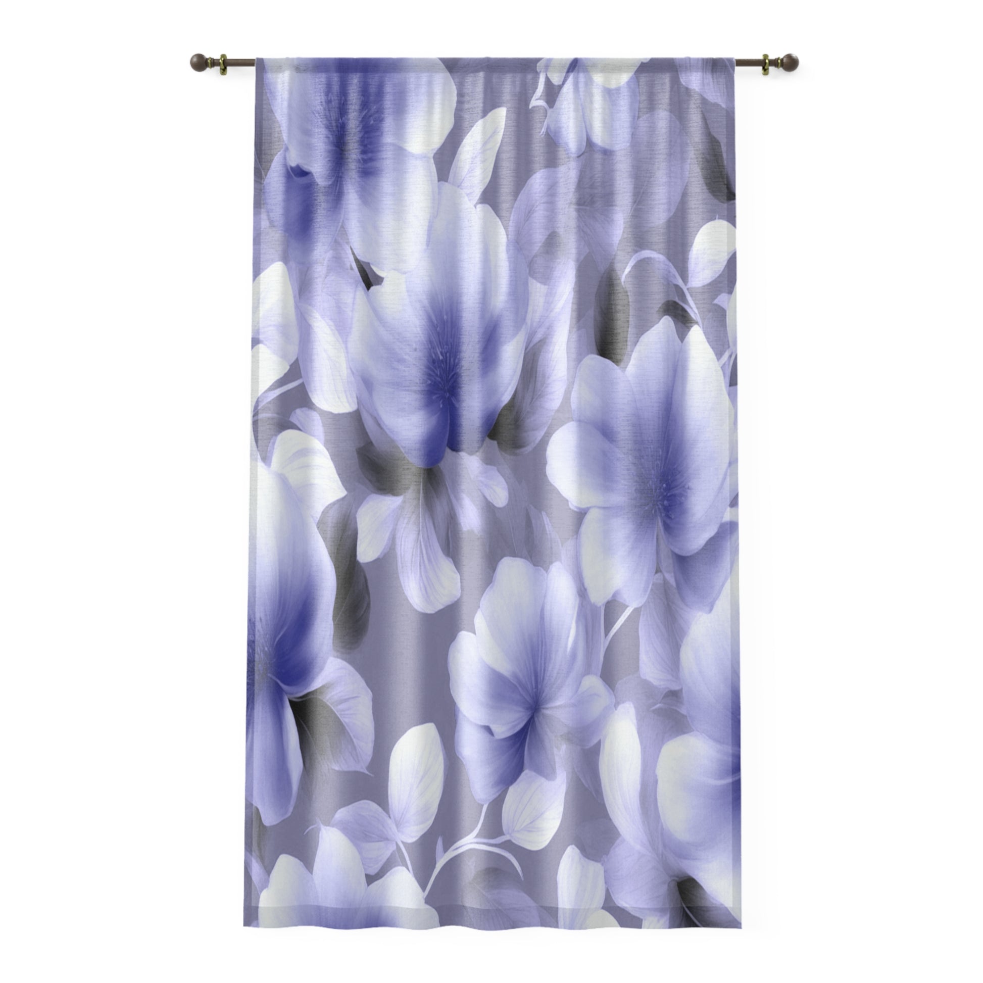 Indigo Blossom Floral Bunch Sheer Window Curtain, 50" x 84", partially transparent