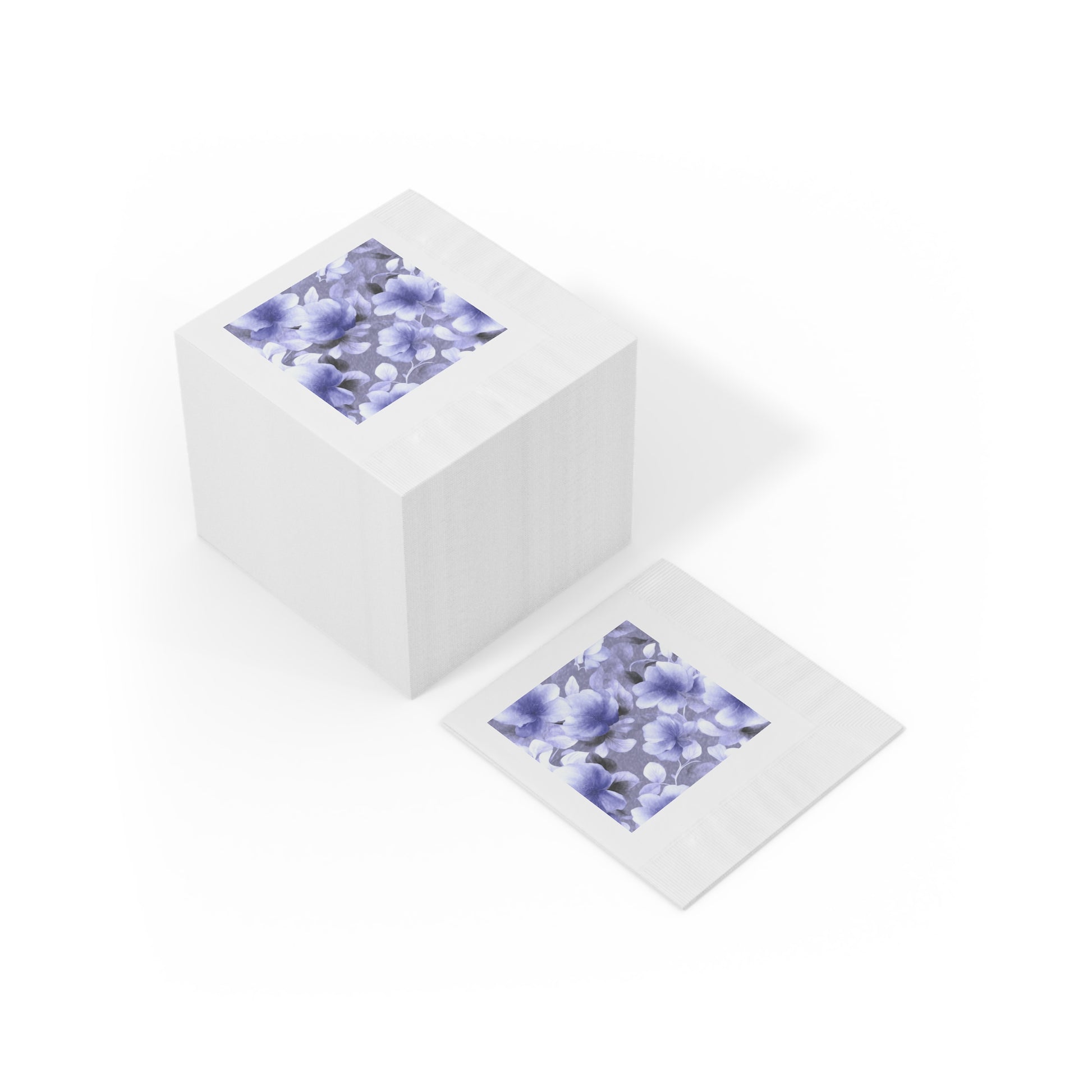 Indigo Blossom Floral Bunch White Coined Napkins, 4.8" x 4.8"