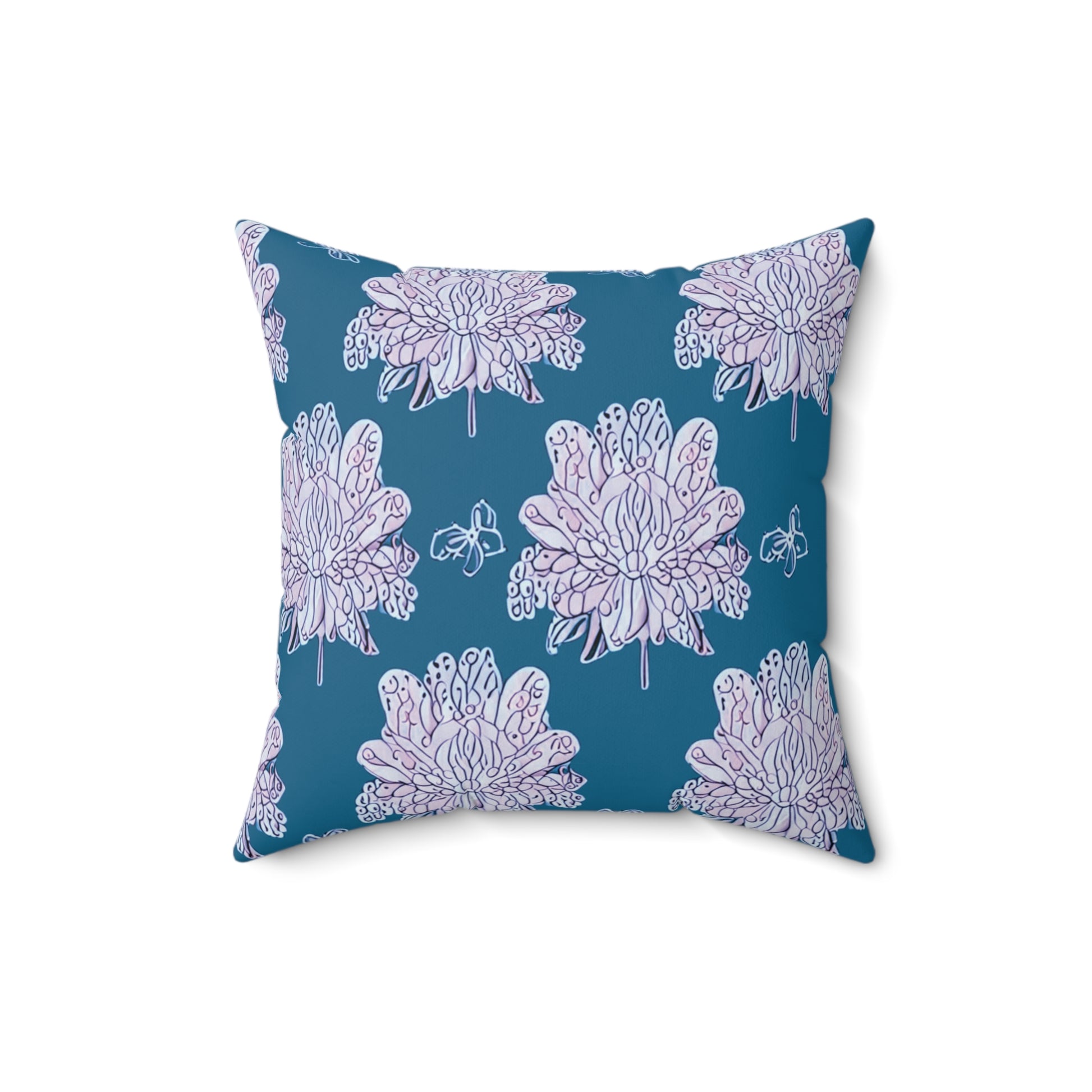 Lavender Floral Butterflies 16" x 16" Faux Suede Square Pillow
