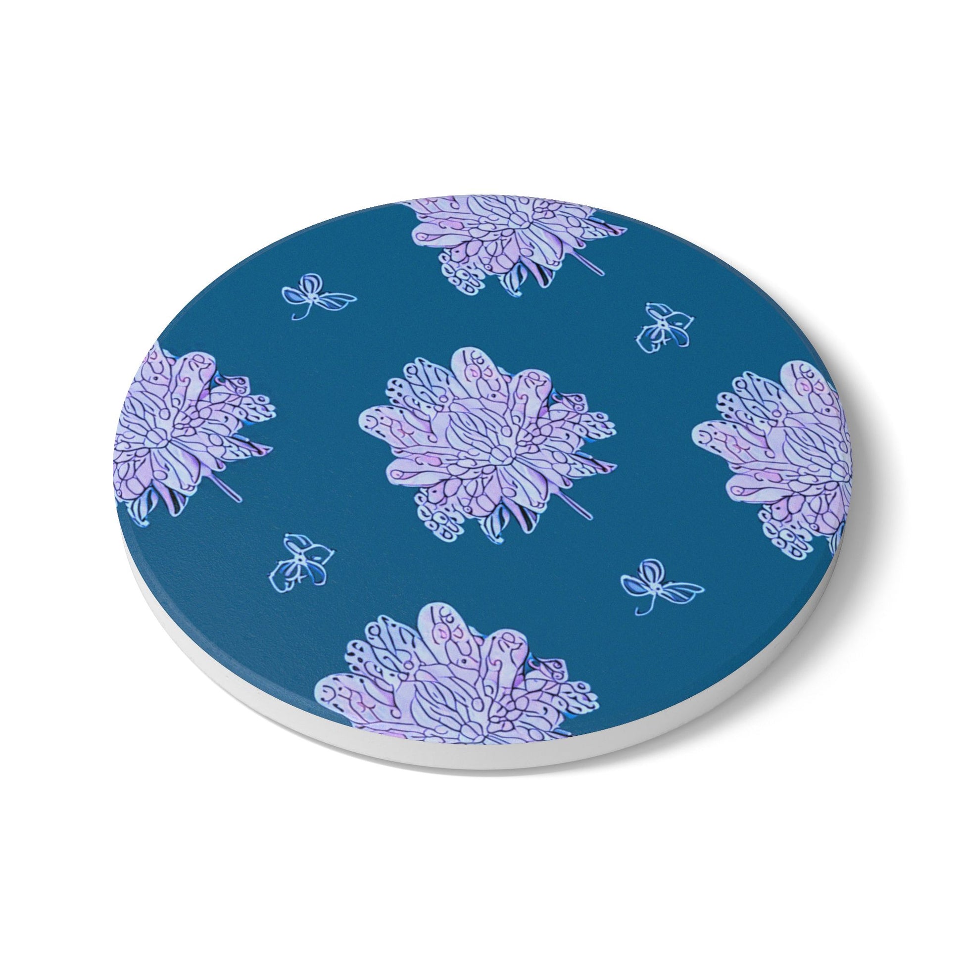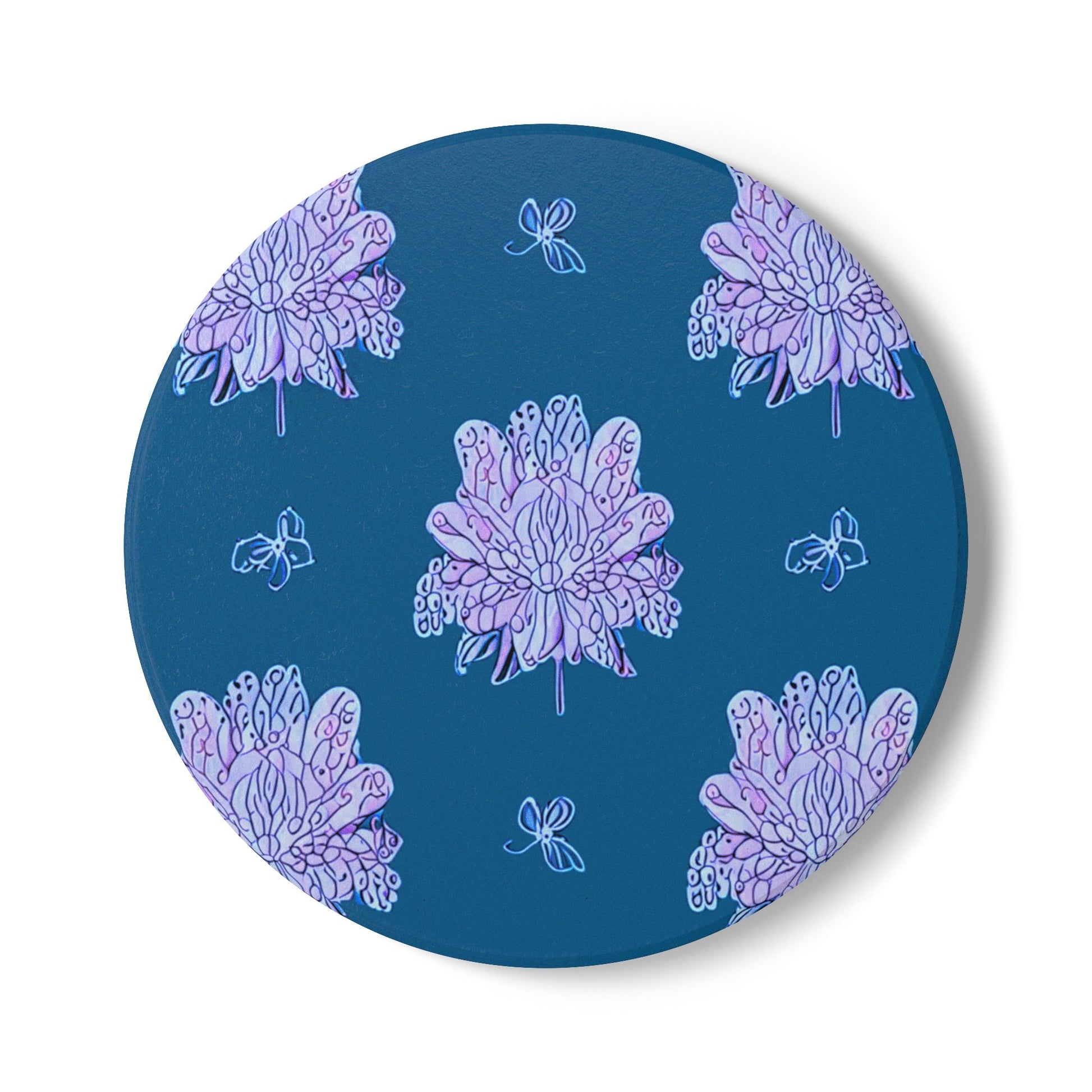 Lavender Floral Butterflies 4" x 4" Round Ceramic Coaster