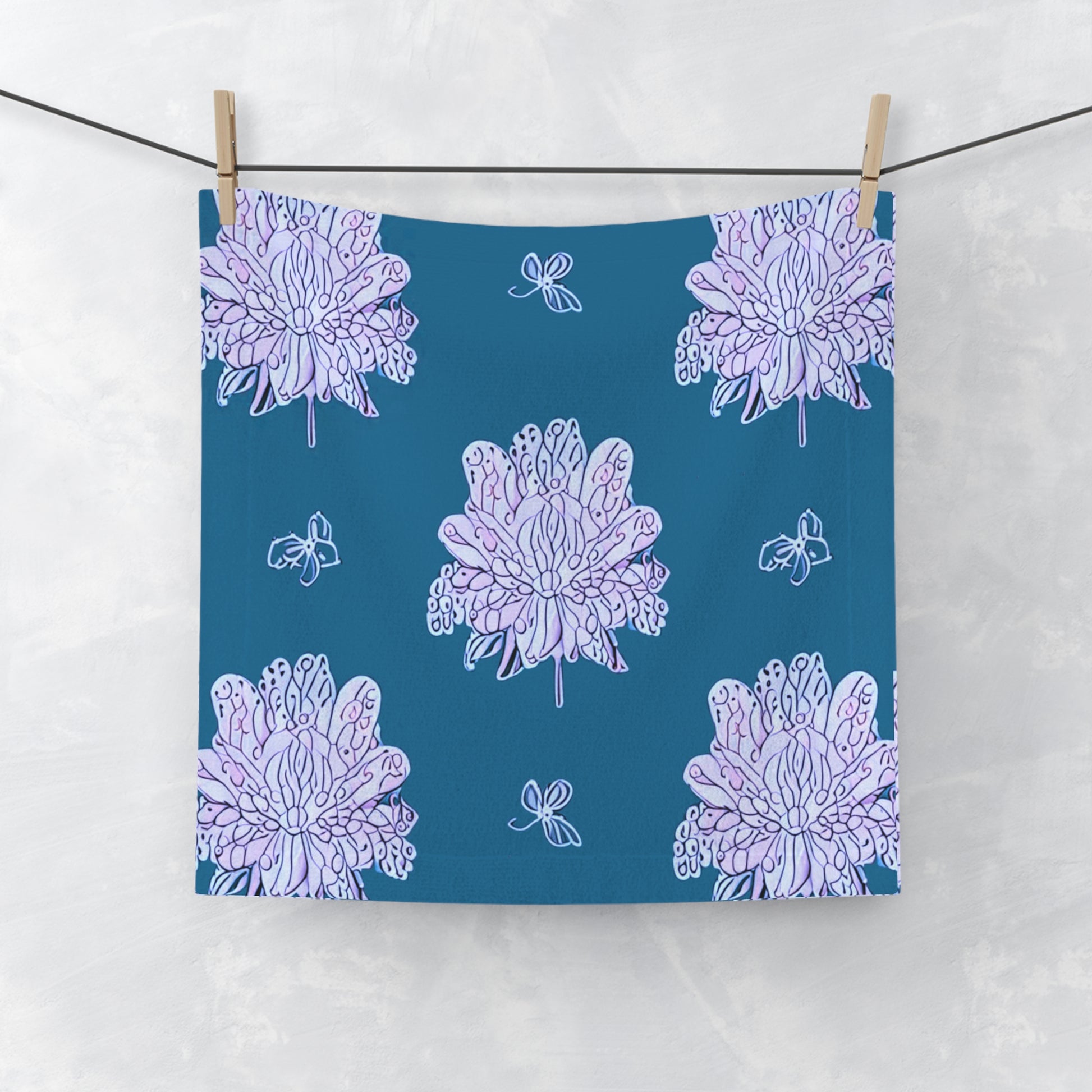 Lavender Floral Butterflies Face Towel, 13" x 13"