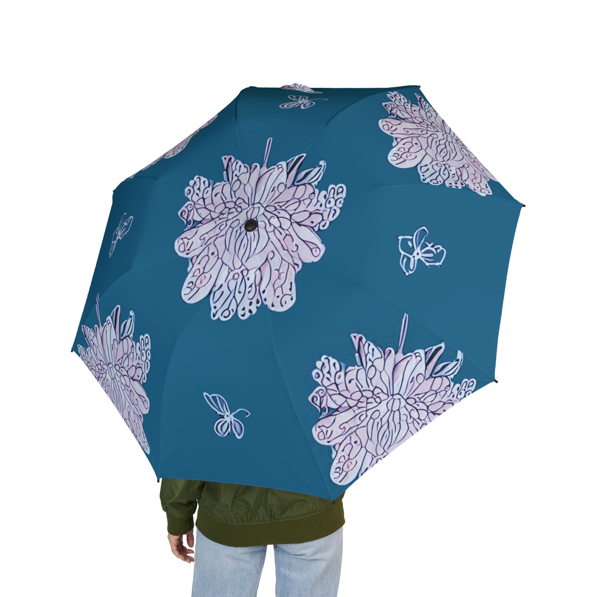 Lavender Floral Butterflies Foldable Umbrella - Compact & Chic