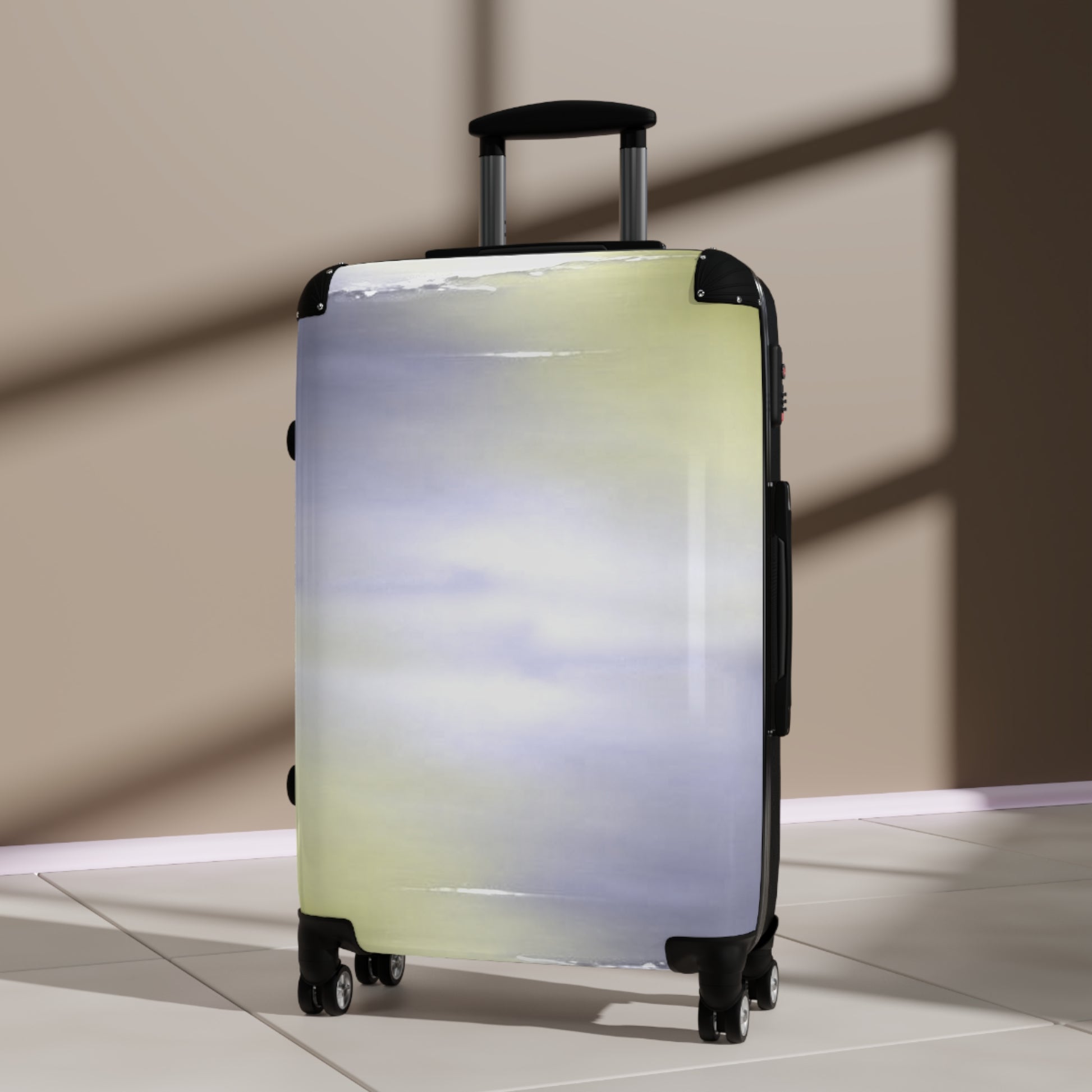 Lavender Sea Golden Fog Medium Suitcase with built in lock, 4 double-wheels, telescopic handle, and ABS back hard-shell