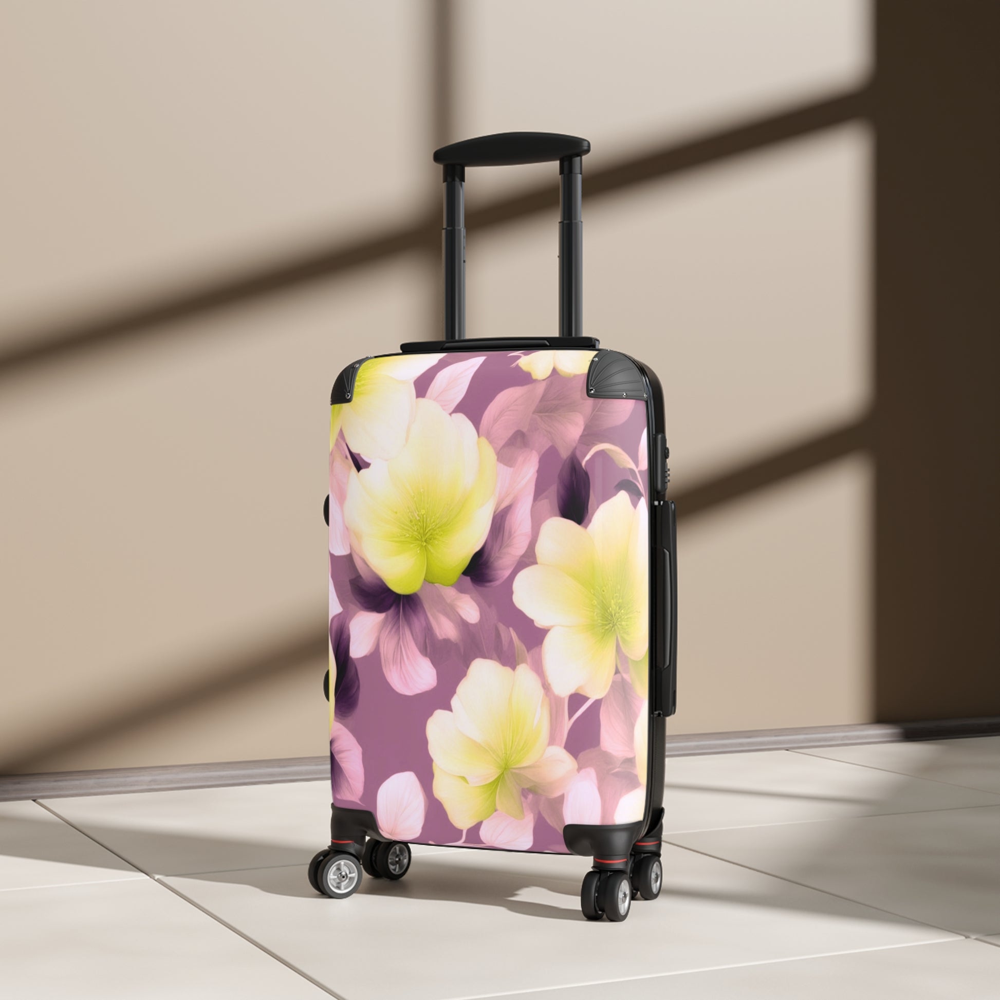 Lemon Blossom Floral Bunch Small Suitcase with built in lock, 4 double-wheels, telescopic handle, and ABS back hard-shell