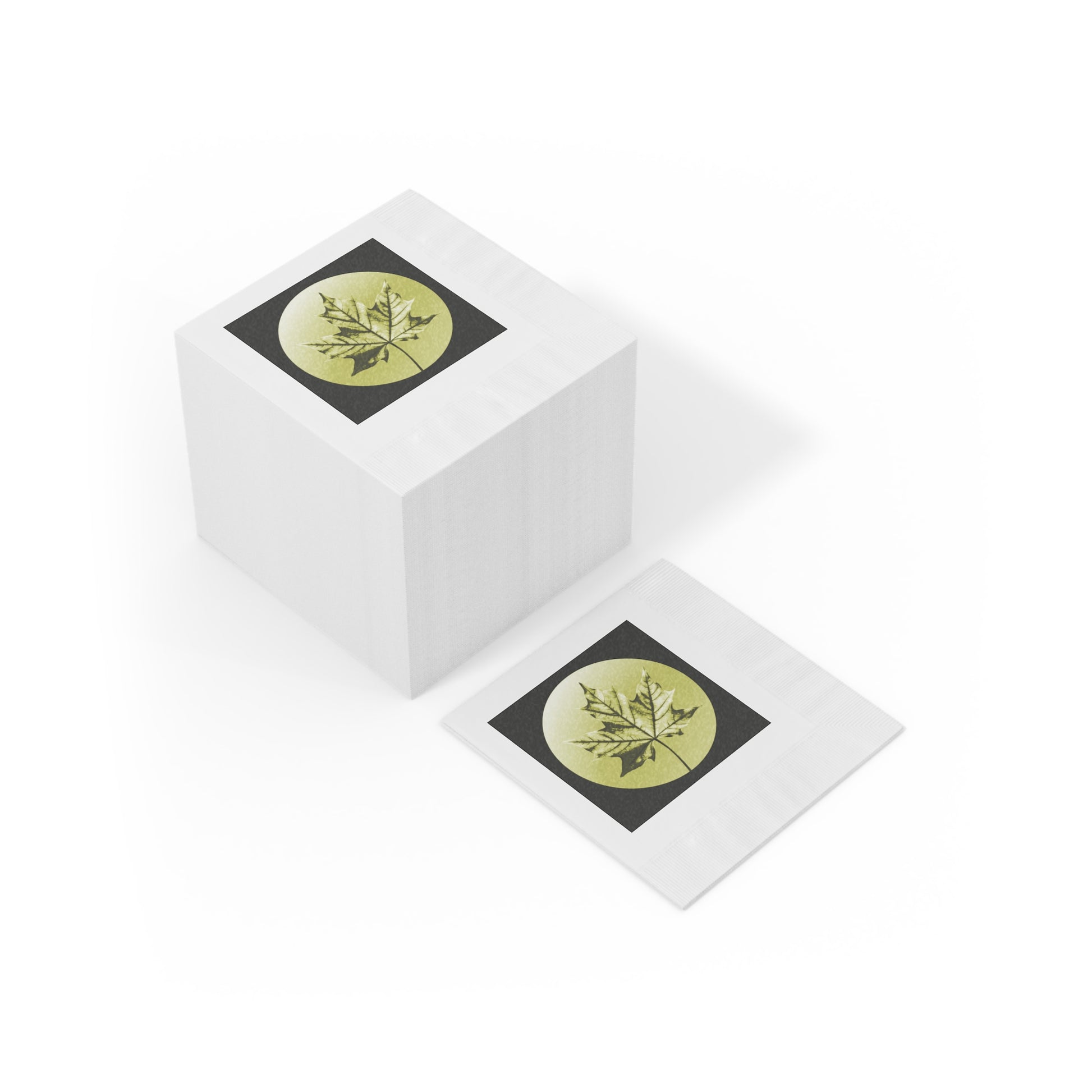 Lemongrass Maple Leaf White Coined Napkins, 4.8" x 4.8"