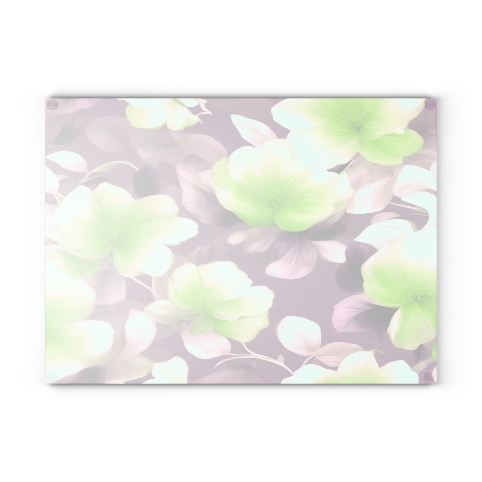 Lime Lavender Floral Bunch Glass Cutting Board, 11" x 15"